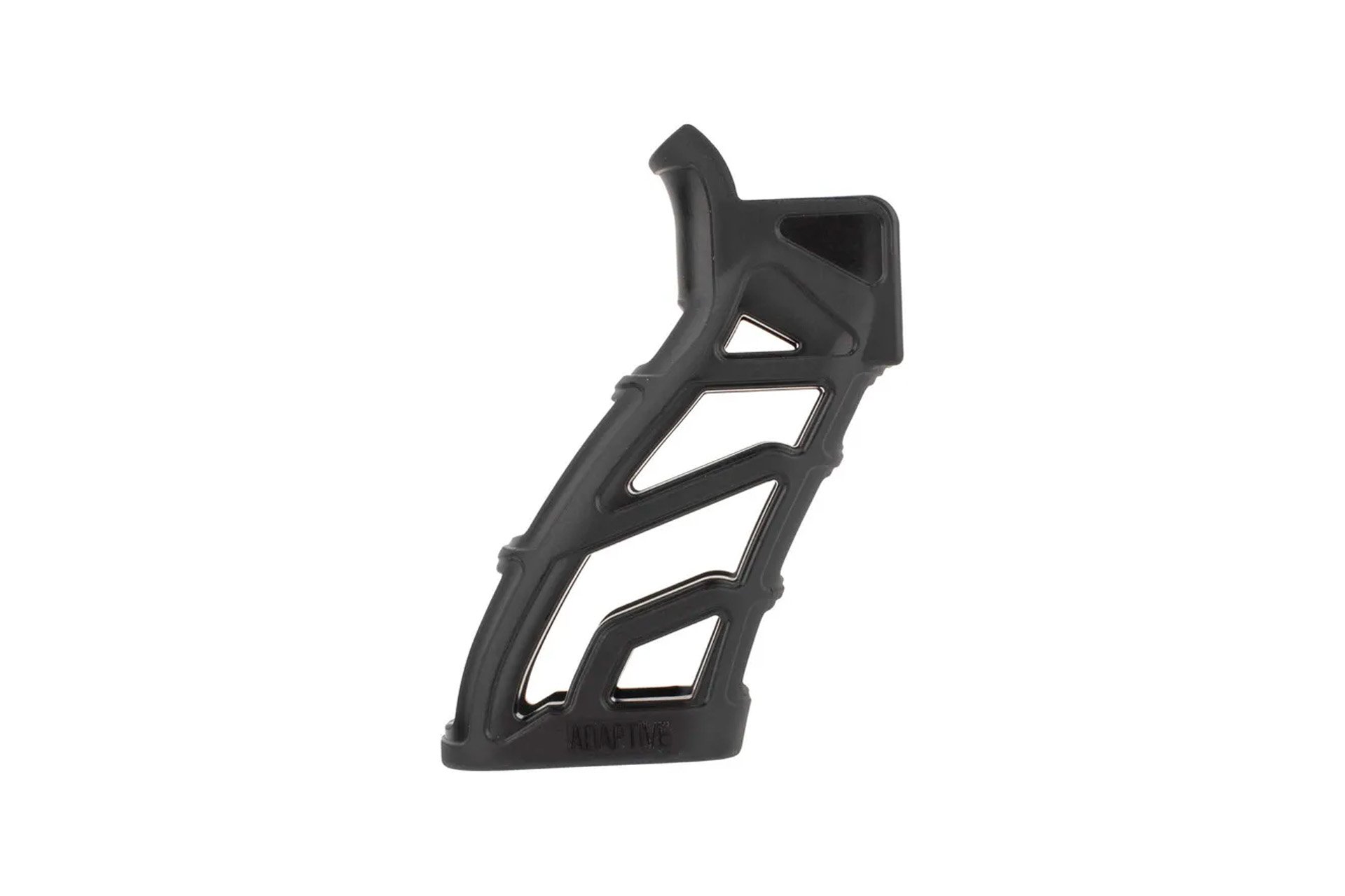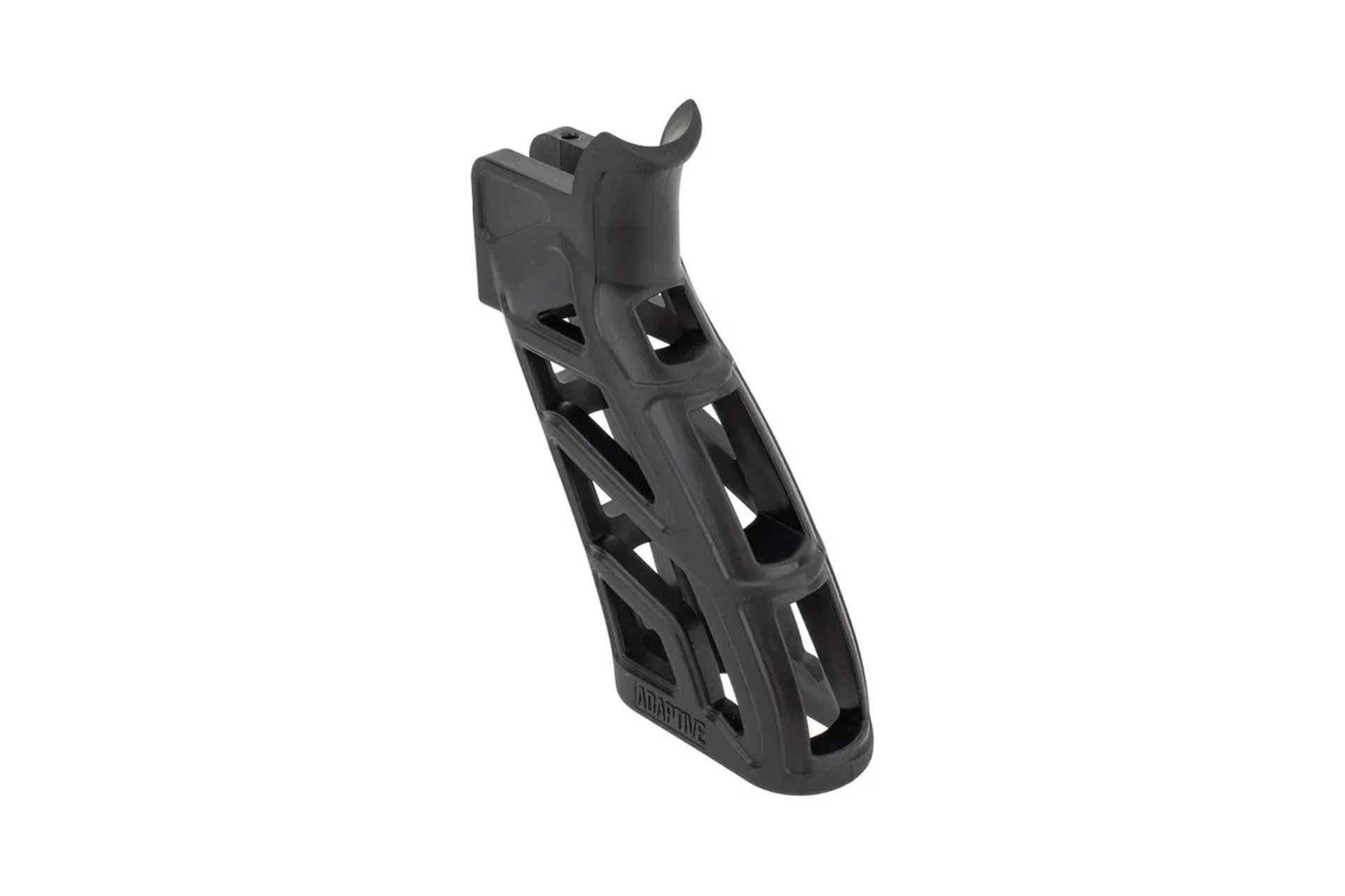 - Contoured rear stock shape with textured grip surface