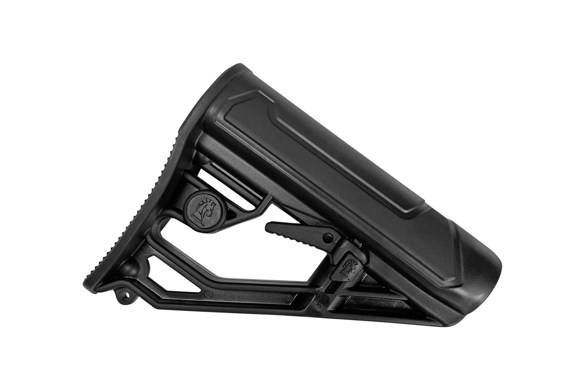 The EX Performance M4-style Stock Lite features an easy-to-reach rapid adjust lever for custom length-of-pull, molded in non-rust standard sling swivel attachment and a contoured shape for quick and comfortable shoulder placement. Durable polymer construction, oversized extra strength adjustment pin and sleek industrial design.