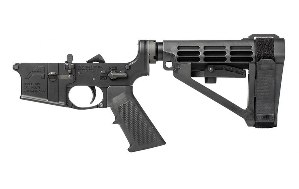 The Aero Precision AR15 Complete Lower Receiver with SB Tactical Stabilizing Brace is the perfect starting place for your AR pistol build. This complete lower features an AR15 Gen 2 Lower and is upgraded to include an SB Tactical SBA4 Stabilizing Brace. The SBA4 is an adjustable ATF Compliant Pistol Stabilizing Brace that provides integral QD sling sockets and increased stability for your AR Pistol. Save when you buy this Complete Lower Receiver and let our specialists do the installation for you!