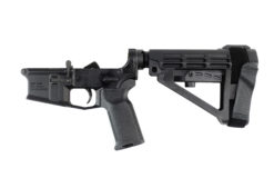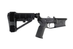 The Aero Precision M4E1 Complete Lower Receiver with SB Tactical Stabilizing Brace is the perfect starting place for your AR pistol build. This complete lower features an M4E1 Lower and is upgraded to include an SB Tactical SBA4 Stabilizing Brace. The SBA4 is an adjustable ATF Compliant Pistol Stabilizing Brace that provides integral QD sling sockets and increased stability for your AR Pistol. Save when you buy this Complete Lower Receiver and let our specialists do the installation for you!