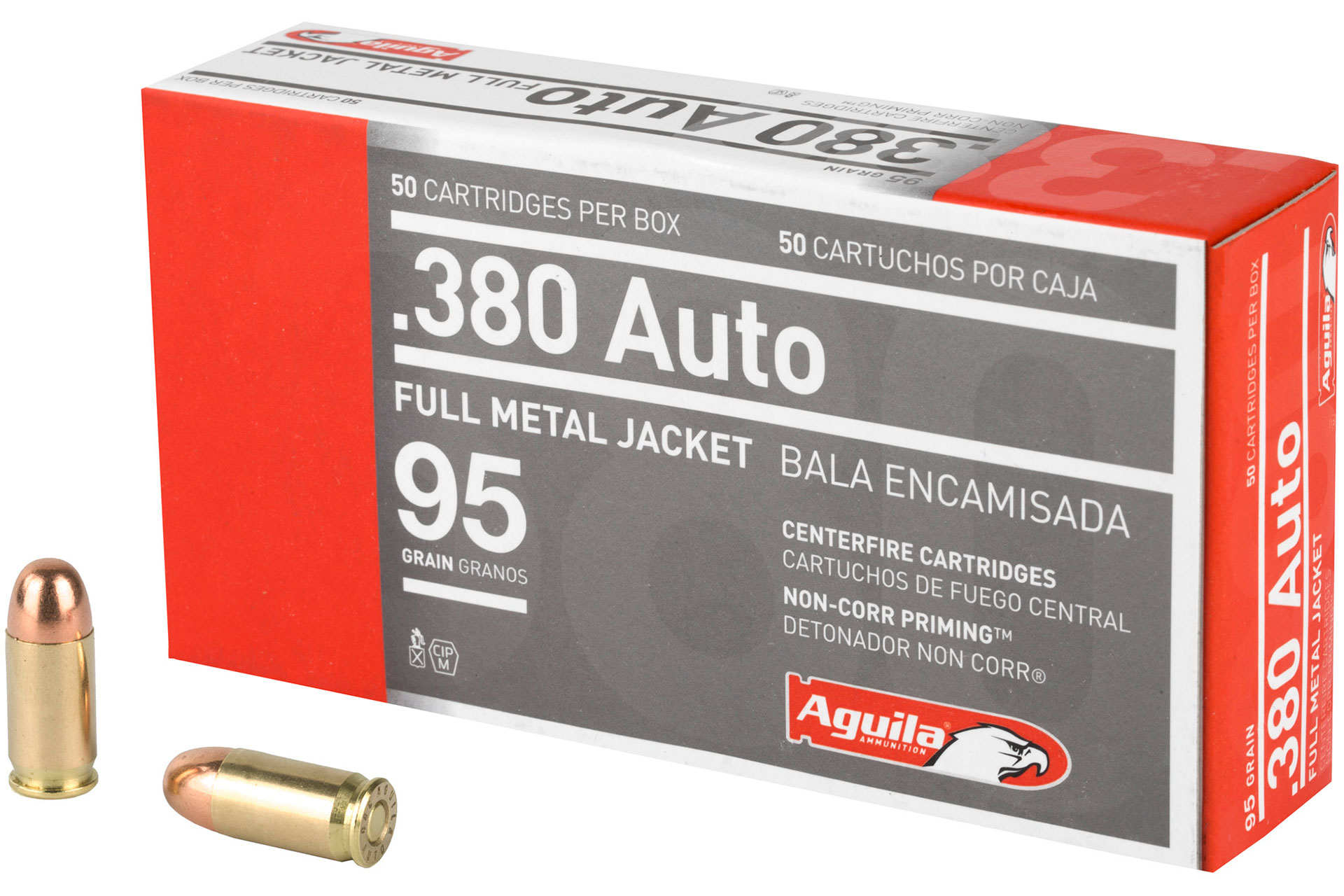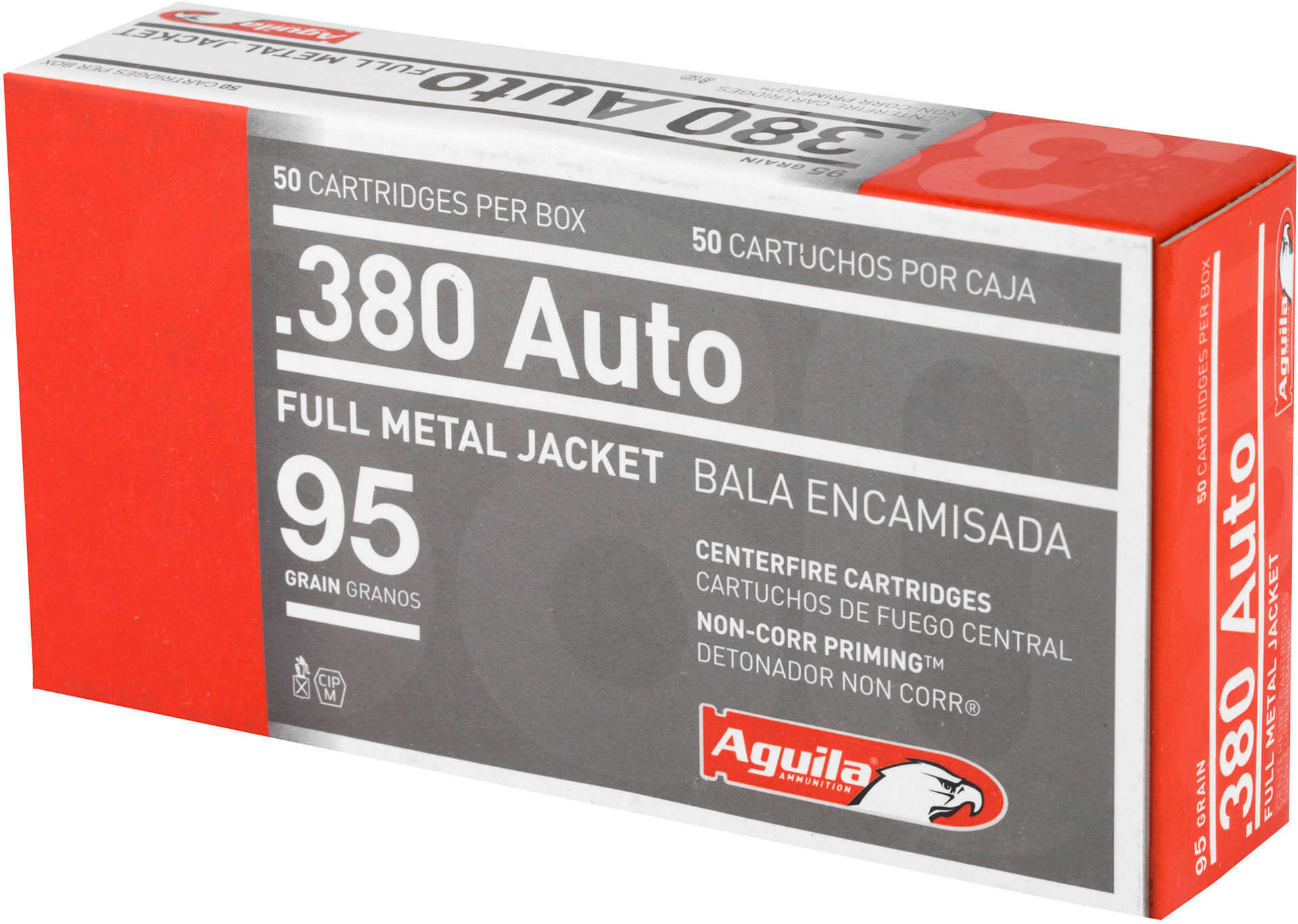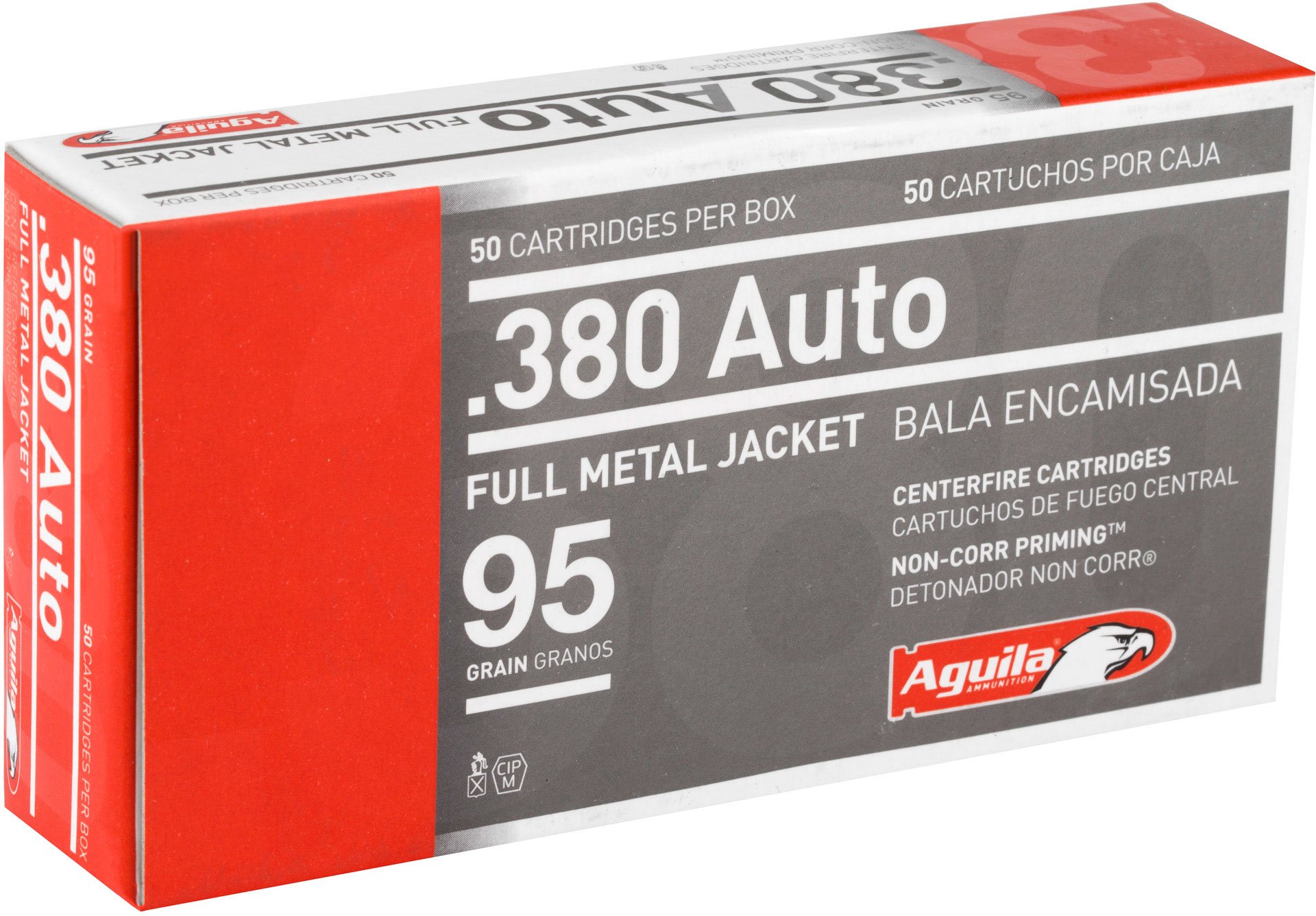Aguila Ammunition Pistol 380ACP 95 Grain Full Metal Jacket Handgun Ammo - 50 Rounds - AGA1E802110