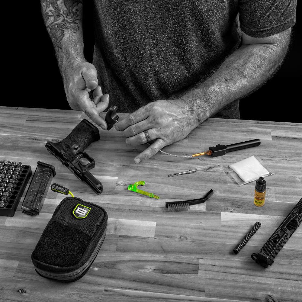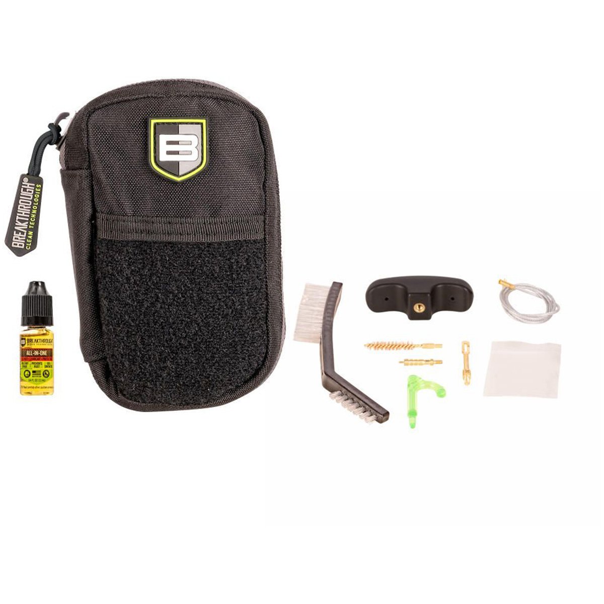 SKU: 22846 Categories: Cleaning Kits By Caliber, Daily Deals on AR15 Parts, Excluded from Codes, Tools & Cleaning DescriptionExperience the ultimate convenience with the Breakthrough Clean Technologies® Badge Series Pull-Through Cleaning Kit. This all-in-one kit packs a punch, ensuring your gun stays in top-notch condition. Featuring top-of-the-line cleaning tools and our highly effective All-In-One CLP, this kit has everything you need to clean your 9mm chambered firearms. Provided are all accessories needed and is neatly organized in a rugged nylon molle pouch. Elevate your range day with a cleaner, and a more reliable firearm with Breakthrough Clean Technologies®.