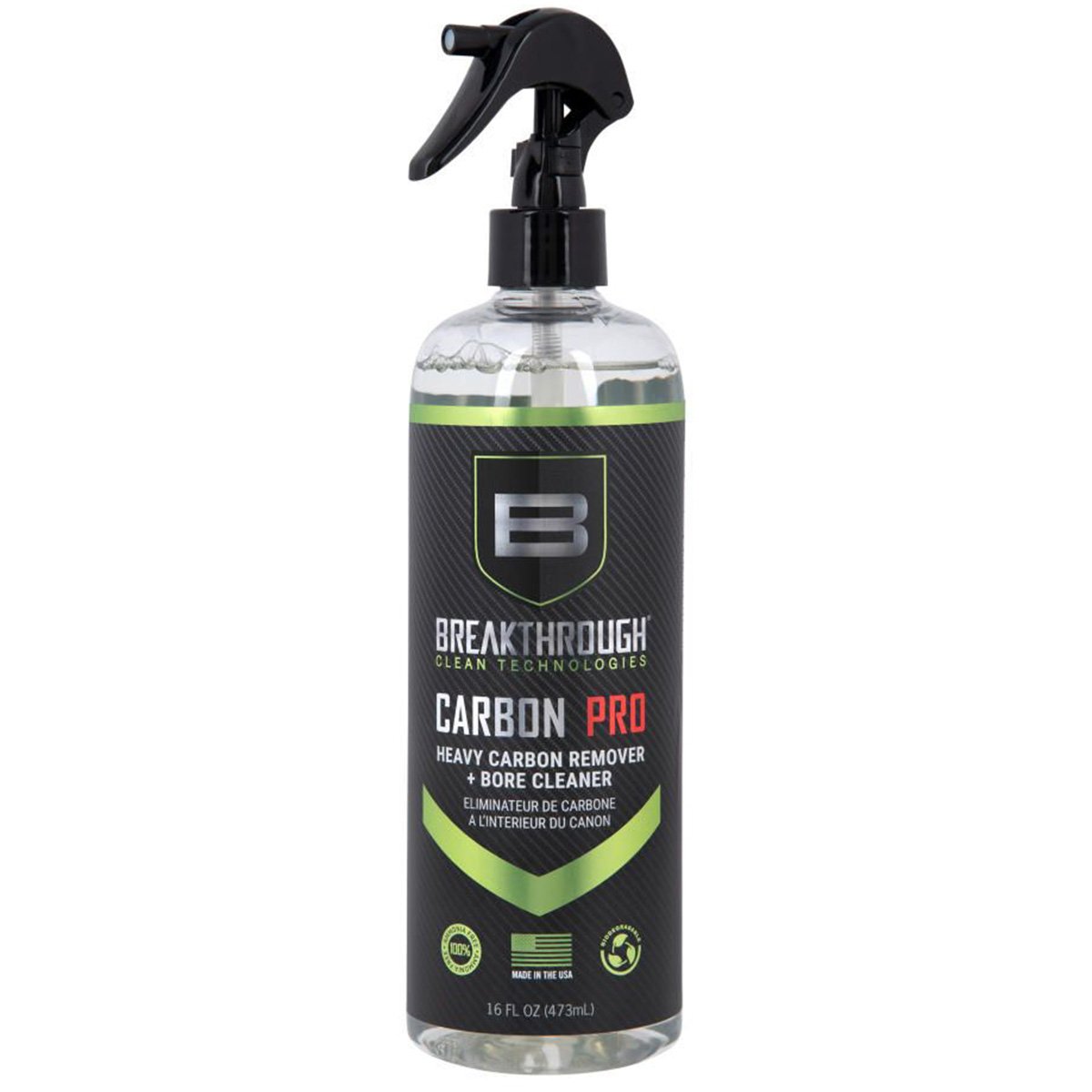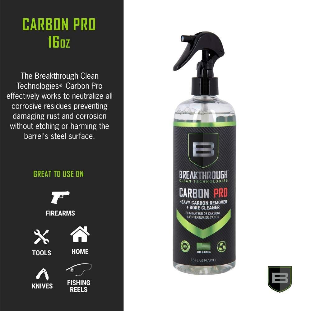 The Breakthrough Clean Heavy Carbon Remover is a water-based cleaner that removes heavy carbon and lead deposits from your firearm. Utilizing a proprietary blend of chemical surfactants and detergents, our degreaser effectively neutralizes all corrosive residues, especially on the gun’s barrel and bore. It prevents damaging rust and corrosion without etching or harming the barrel’s steel surface. Primarily used to clean and maintain firearms, this carbon remover also works on cars, aircrafts, boats, and motorcycles.