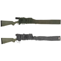 - VERSATILE GUN SOCK: A great addition to your gun accessories, this gun sock fits rifles and shotguns with or without scopes. It measures 52″ and features a drawstring elastic closure.