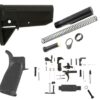The Lower Parts Kit includes the following:  Black A2 Pistol Grip, Bolt Catch, Bolt Catch Plunger, Bolt Catch Roll Pin, Bolt Catch Spring, Buffer Retainer, Buffer Retainer Spring, Disconnect, Disconnect Spring, Hammer, Hammer Pin, Hammer Spring, Magazine Catch, Magazine Catch Button, Magazine Catch Spring, Pivot Pin, Pivot Pin Detent, Pivot Pin Detent Spring, Ambidextrous Safety Selector, Selector Detent, Selector Detent Spring, Takedown Pin, Takedown Pin Detent, Takedown Pin Detent Spring, Trigger, Trigger Guard, Trigger Guard Roll Pin, Trigger Pin, Trigger Spring.
