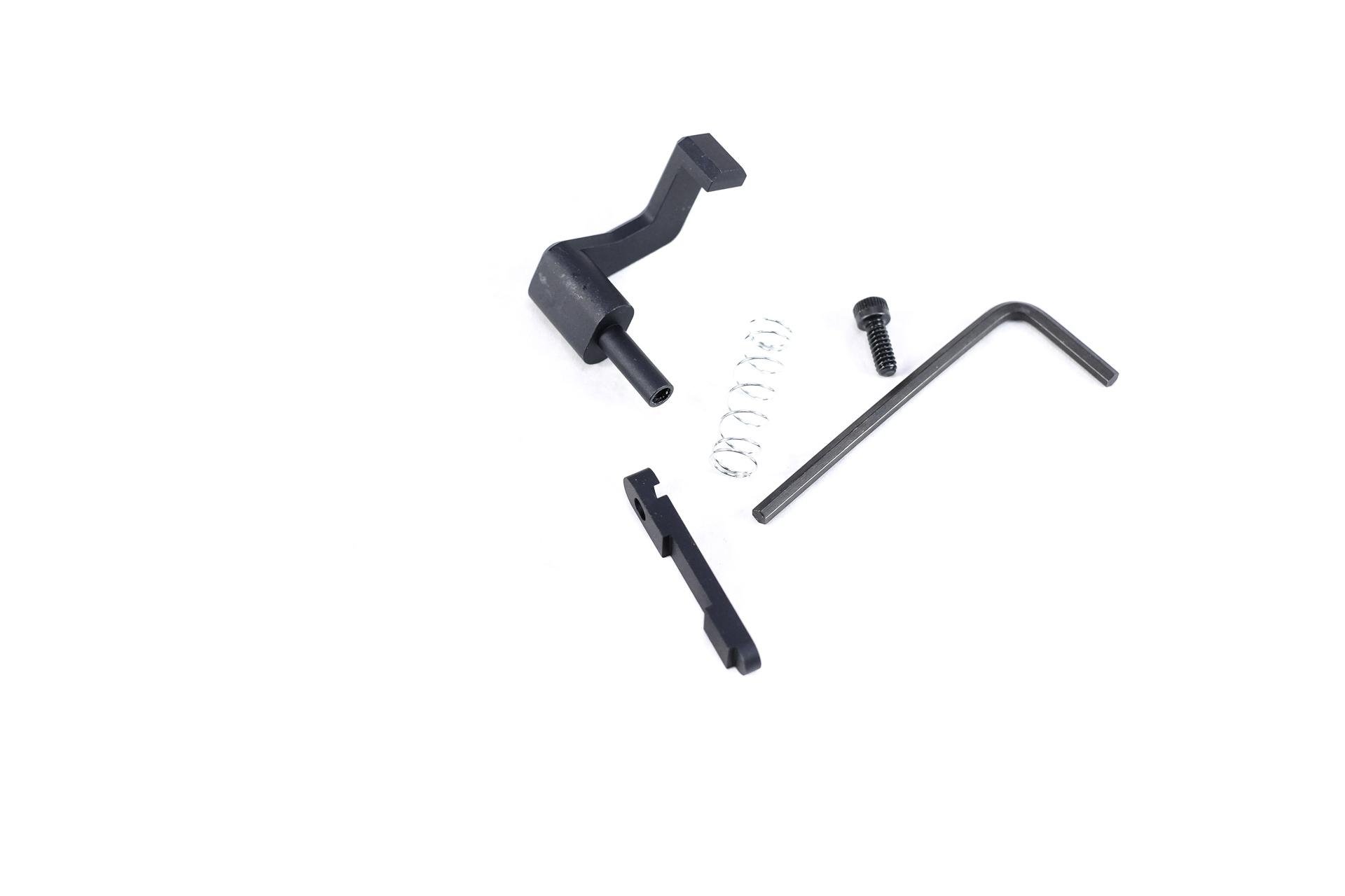 ARMagLock is superior in every way to any competitors product. Our solution allows the shooter to re-insert a magazine while the upper and lowers receivers (the action) are closed or open, allowing for SIGNIFICANTLY faster magazine changes. Our competitors products ONLY allow the shooter to re-insert a magazine while the action is in the open state, slowing you down CONSIDERABLY. Our product allows you to have the ejection port cover open or closed when closing the action, the competition only allows this with the port door closed, causing even slower operation. Our product does not scratch your upper receiver with an adjustment screw like competition does. Last but certainly not least, ours also has finger knurling for excellent grip in any and all weather conditions, in addition to coming with the knurled grip tacticool rear take-down pin and accompanying split ring for quick pull operation. How could there be any other choice than an ARMagLock