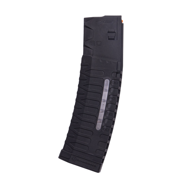 American Tactical Imports (ATI®) has partnered with German arms manufacturer Schmeisser GmbH to exclusively import and distribute the Schmeisser S60 60 round AR-15 magazine. Made from glass-reinforced polymer, this patent-pending magazine features a unique follower system that allows for double the capacity of a normal AR magazine without being bulky or cumbersome. Designed to shoot both .223 REM and 5.56X45MM, the Schmeisser S60 will give you an instant capacity upgrade over the standard AR mag at an affordable price for your AR Carbine or Pistol. The Schmeisser S60 was built specifically for .223 Remington or 5.56X45mm ammo only.