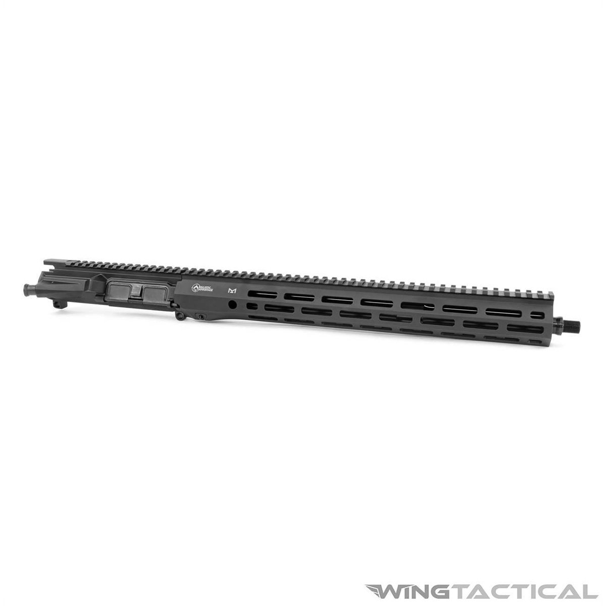 This upper comes with the Ballistic Advantage Logic M-LOK handguard. This 15-inch handguard is machined from 6061-T6 aluminum and features M-LOK slots at 3, 6, and 9 o’clock positions, along with a full top Picatinny rail for mounting optics and other accessories.