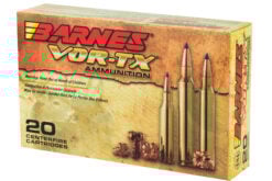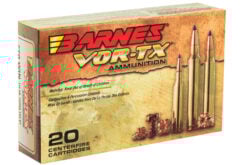 Barnes(R) VOR-TX(R) is precision ammunition loaded with the deadliest bullets on the planet. Barnes, the leader in bullet innovation offers hunters the ultimate in accuracy, terminal performance and handloaded precision in a factory loaded round. Offering double-diameter expansion, maximum weight retention and excellent accuracy, the TSX(R), Tipped TSX(TM), and TSX FN(TM) provide devastating energy transfer. Multiple grooves in the bullet’s shank reduce pressure and improve accuracy. Bullets open instantly on contact – no other bullet expands as quickly. Nose peels back into four sharp-edged copper petals.