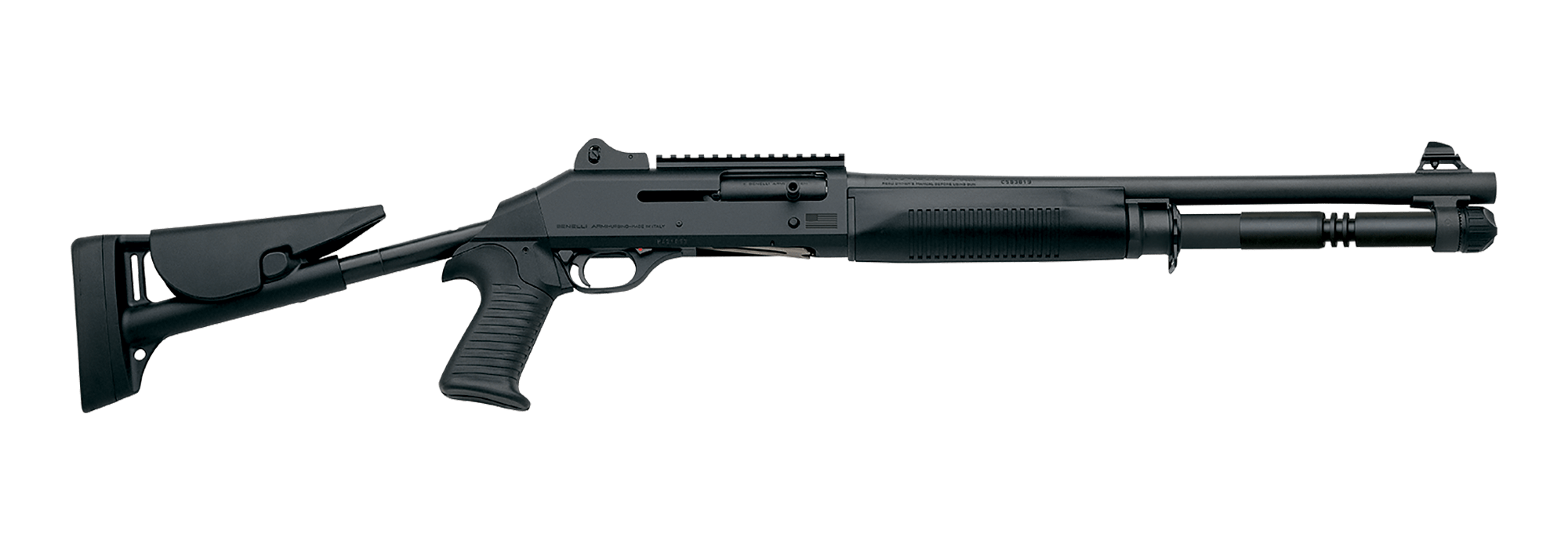 The Benelli M1014 is a limited edition release and features the U.S. Flag engraved on the receiver in honor of this model’s use by the U.S. Marine Corps. Currently deployed by the U.S. Marine Corps, the M1014 sets the standard for military shotgun performance. This limited model comes standard with a fixed-position skeleton stock with a pistol grip and cheek piece.