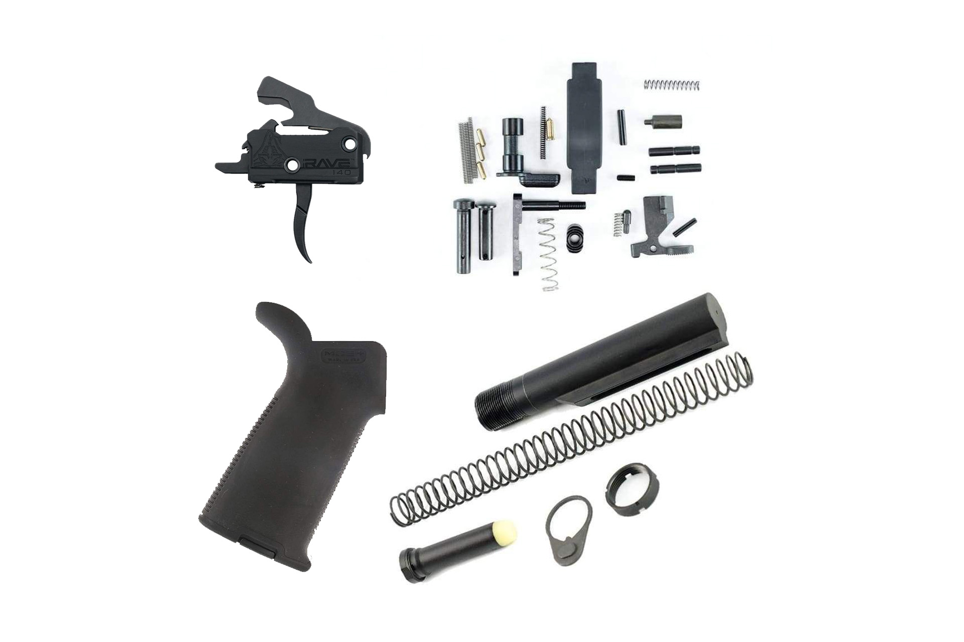 This Kit includes the Rise Armament RA-140 SS Drop-in Trigger, Dirty Bird Anti-Walk Pin Set, Dirty Bird Industries’ Lower Parts Kit Minus FCG & Pistol Grip, Magpul MOE Pistol Grip and NBS Carbine Buffer / Receiver Extension Kit. We know most shooters prefer different types of stocks so instead of building that into the cost, we have not included it in the kit. You will need purchase your own stock.