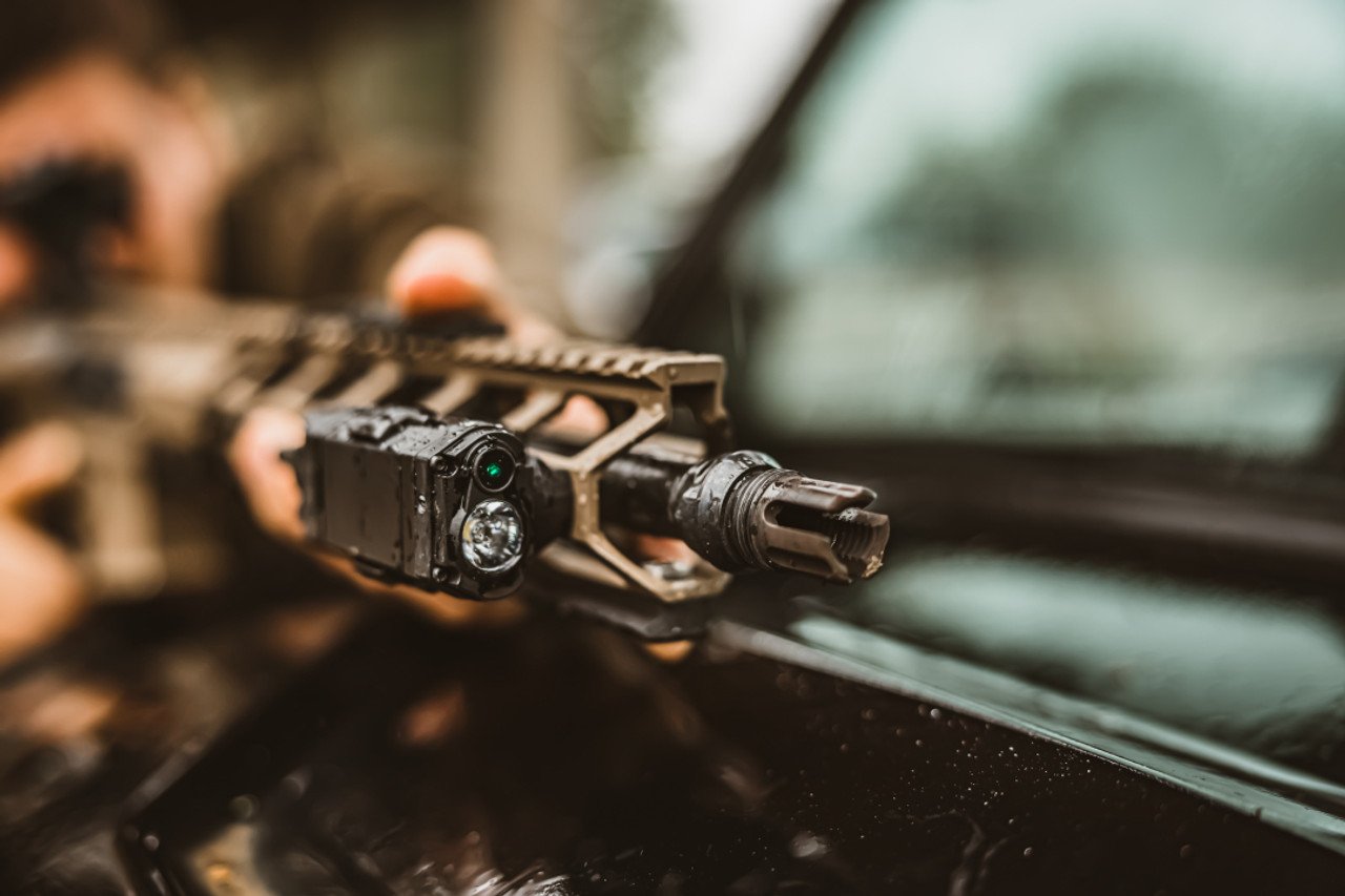 November Savings Sale: use code BFMONTH12OFF for an additional 12% off this item.Breek Arms’ lineup of Outside Threaded Muzzle Devices is an affordable upgrade that gives you the option to run a flash hider or muzzle brake while utilizing our Breek Arms Castle Blast Shield as a forward blast diverter or concussion device. Simply slide the blast shield over the outside of the muzzle device and turn the blast shield on. This gives the shooter a more pleasant experience when firing especially for shorter platforms that tend to have an overbearing concussion.