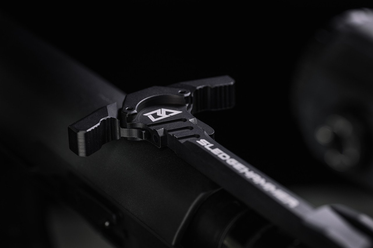 The Sledgehammer AR-15 charging handle is compatible with all MIL-SPEC AR-15 and M16 rifles and boasts large, serrated latches that offer confident manipulation even while wearing gloves. At only 1.1 oz., it adds minimal weight while maximizing performance.