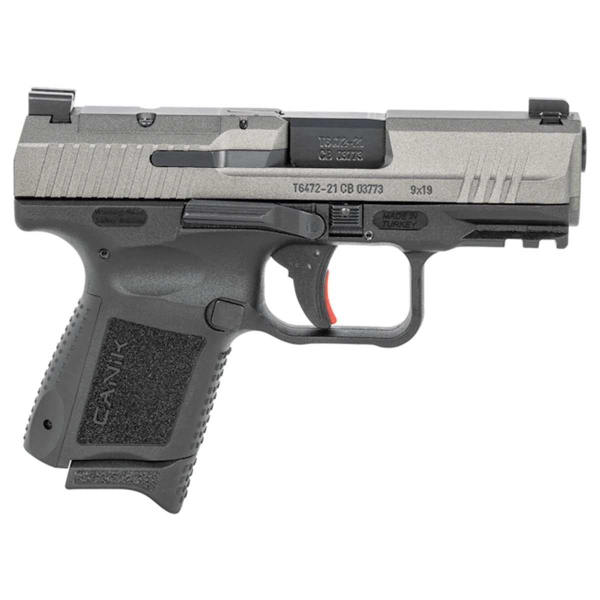 Canik TP9 Elite Sub-Compact 3.6" 9mm Luger 15+1/12+1, Tungsten Gray Slide, Black Poly Frame w/Picatinny Rail - HG6597TN