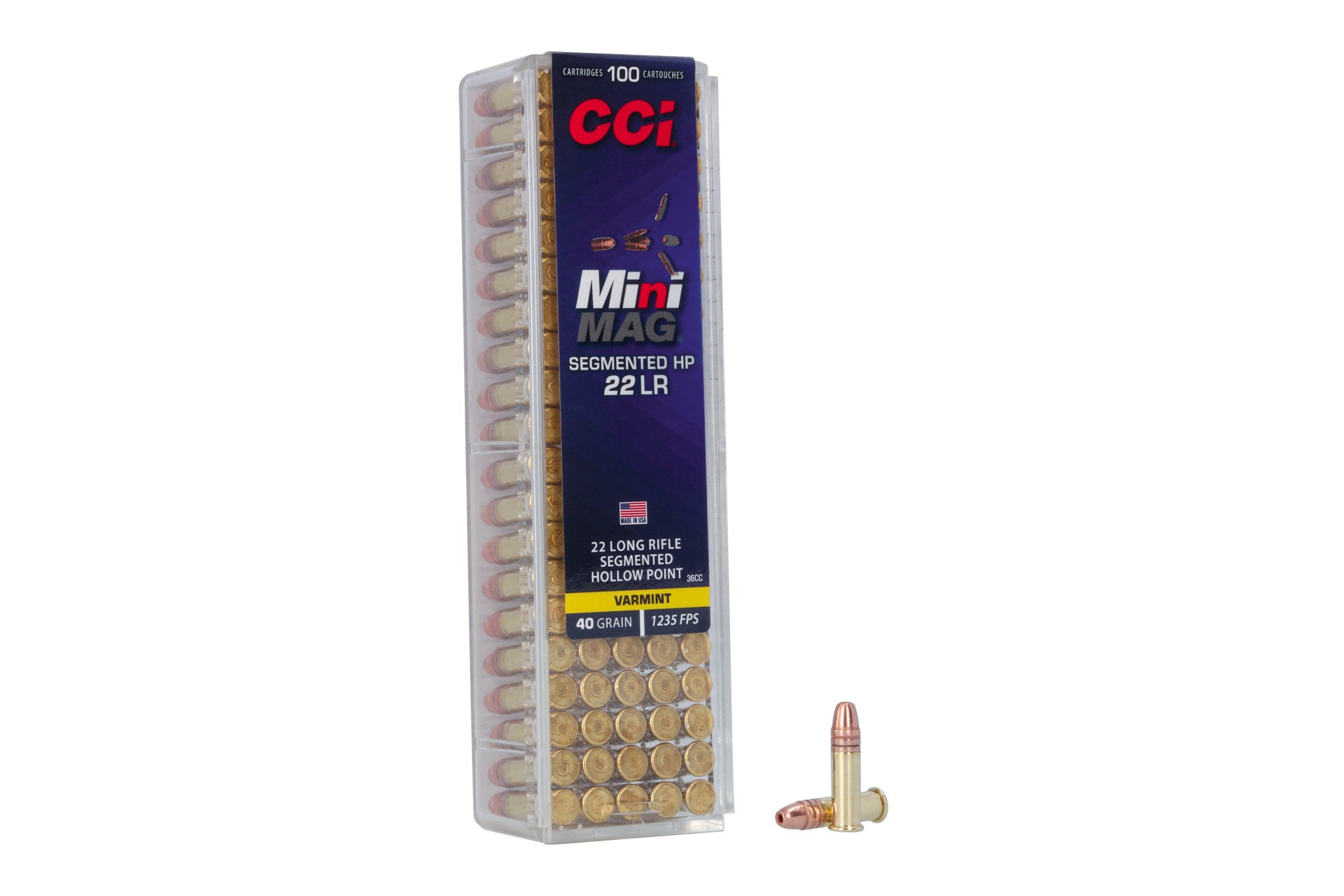 CCI Mini-Mag ammunition is ideal for small game hunting and general plinking. It is one of the industry’s leading high velocity rimfire rounds that features clean-burning propellants helping to keep the action cleaner than other popular rimfire ammunitions. Mini-Mag Segmented Hollow Point combines all of what made the original a favorite with a bullet engineered to split into three equal-size parts on impact, creating three distinct wound channels that quickly take down small game and varmints. It’s new production and non-corrosive.