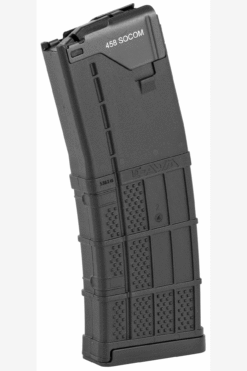 After extensive testing of magazines for the 458 SOCOM, the Lancer L5 Advanced Warfighter Magazine was the top choice due to the polymer body and steel feed lips. The CMMG-modified Lancer L5-AWM takes this top of the line magazine and perfects it for the wide range of 458 SOCOM ammunition on the market by modifying the way the feed lips hold the ammo. The feed lips are not machined or weakened. (Laser Engraved 458 SOCOM)