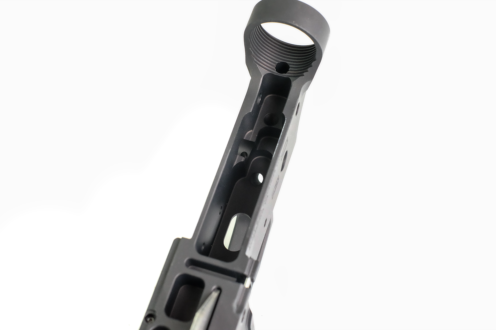 After evaluating many different design concepts from other manufacturers and finding fault in nearly all of them, we’ve designed this lower to use any standard mil-spec or similar bolt catch. Our last round bolt hold open technology instead resides in our matching pistol caliber upper receivers. These billet upper receivers use a PATENT PENDING design which has been proven in numerous field tests to provide the most reliable last round bolt hold open of any that we’ve tested.