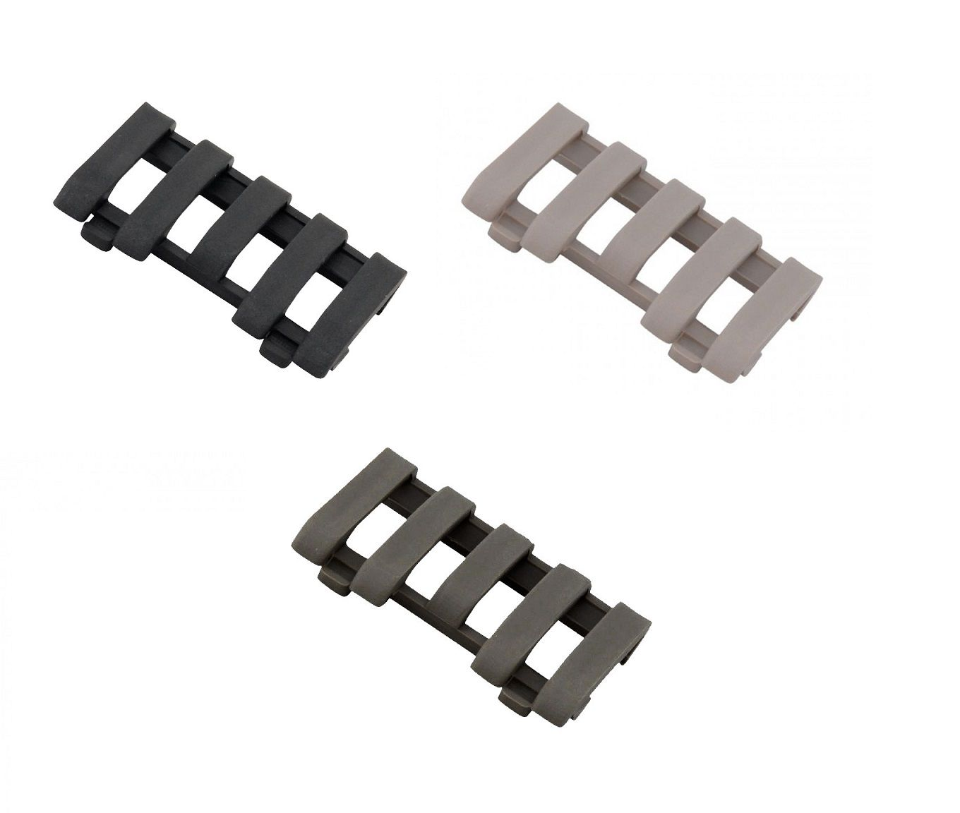 The ERGO Low 5 Slot Wire Loom Rail Covers quickly and reliably secures switch/optical wires to Picatinny rails.