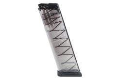 This ETS Group magazine for GLOCK 17 is a 17-round translucent polymer magazine compatible with every generation of 9mm double stack Glock handguns. The proprietary polymer construction is extremely resistant to impacts, temperatures, UV, and harsh chemicals that can adversely effect many other polymer magazines. Unlike many other after market magazines for the Glock, the ETS magazines are fully compatible with both Glock and aftermarket floor plates. Not compatible with the Glock 43.