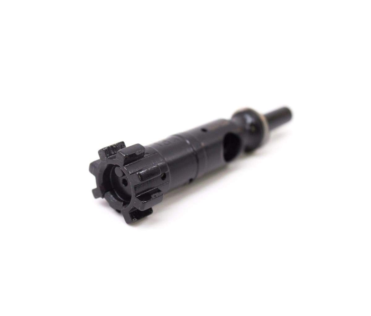 Improvements include using 9310 tool steel for the bolt, which is stronger and nitriding the assembly to increase surface hardness, decrease resistance, and have superiorcorrosion resistance compared to typical chrome and phosphated bolt carrier groups. All bolts are fully MPI tested to ensure the material is sound and without defects. Bolt lugs are chamfered 45 degrees to ensure reliable action for even the highest pressure hand loads and fast lightweight actions. Extractors are S7 Tool Steel. From there, the extractor is sprung using the spring o-ring, and silicone insert.