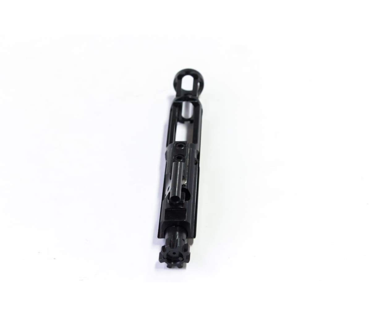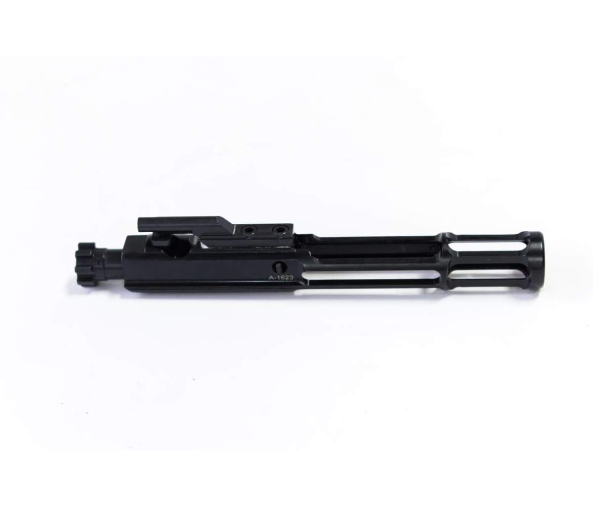 Improvements include using 9310 tool steel for the bolt, which is stronger and nitriding the assembly to increase surface hardness, decrease resistance, and have superiorcorrosion resistance compared to typical chrome and phosphasted bolt carrier groups. All bolts are fully MPI tested to ensure the material is sound and without defects. Bolt lugs are chamfered 45 degrees to ensure reliable action for even the highest pressure hand loads and fast lightweight actions.