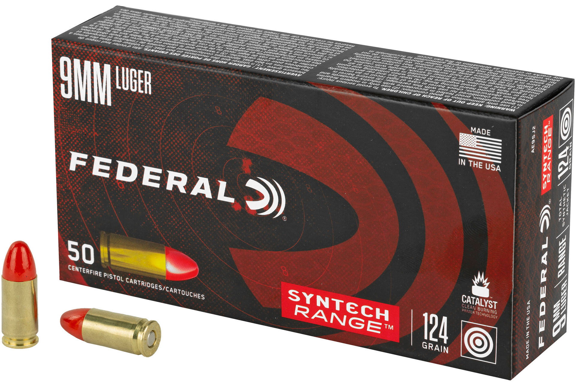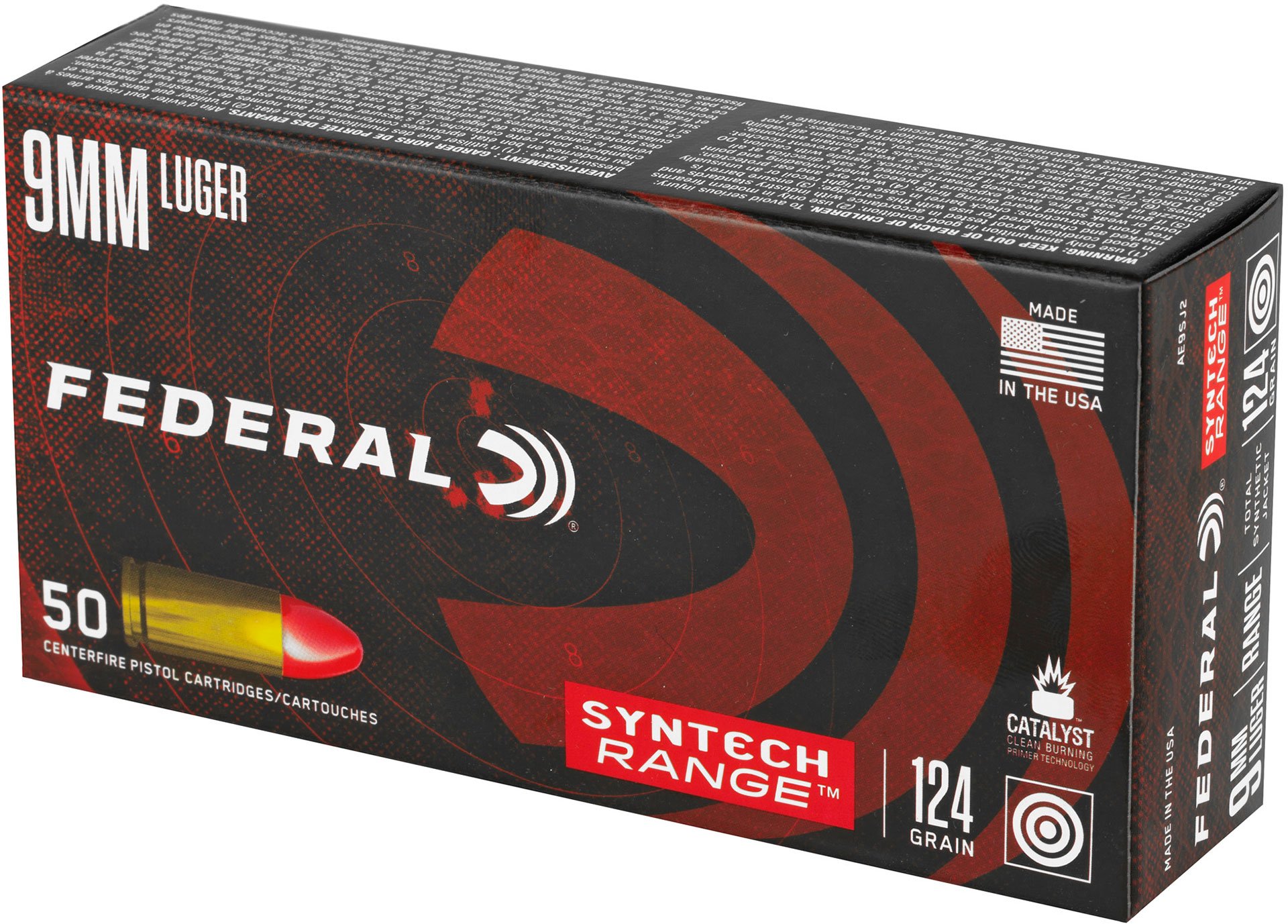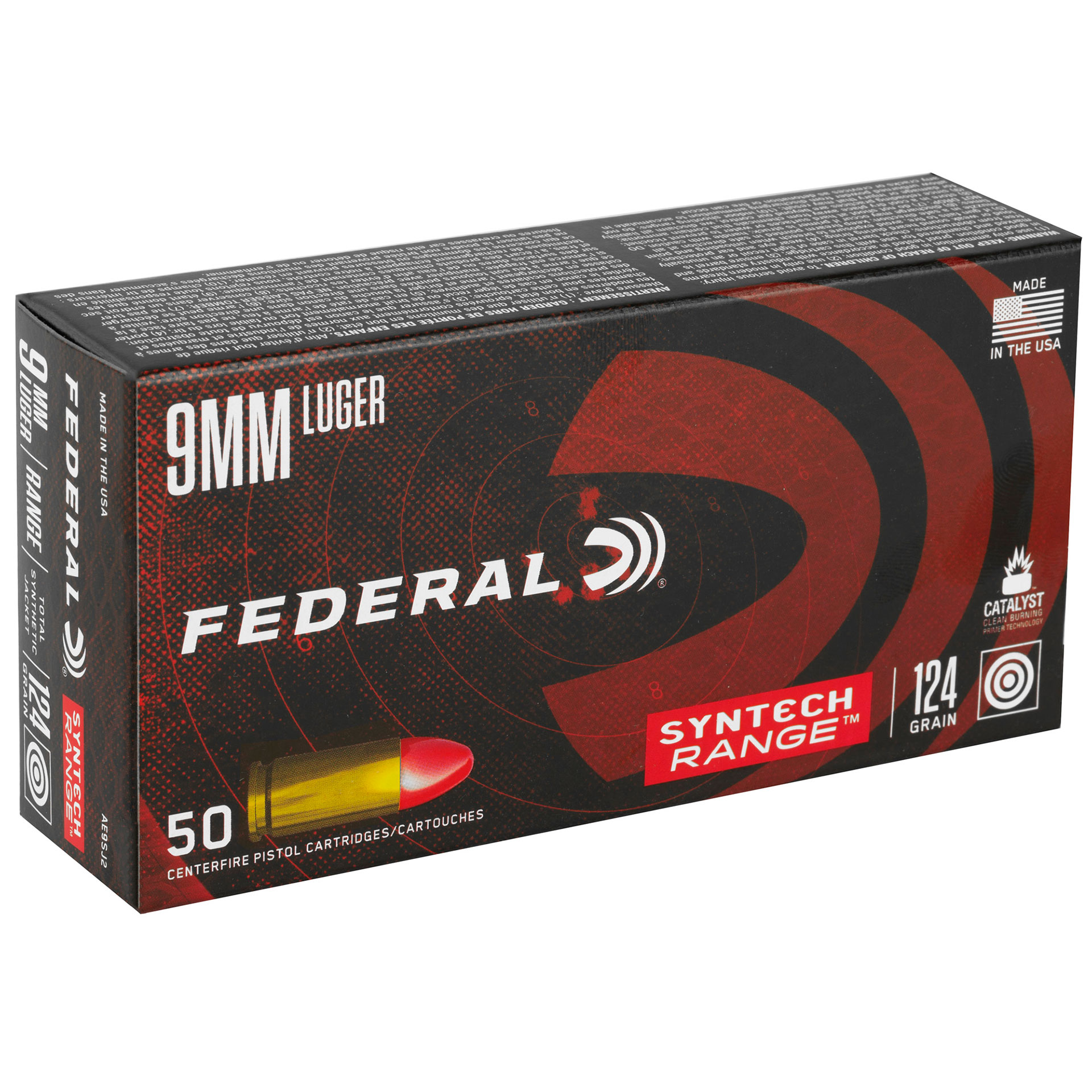 Federal American Eagle 9MM 124 Grain Total Synthetic Jacket Handgun Ammo - 50 Rounds - FEAE9SJ2