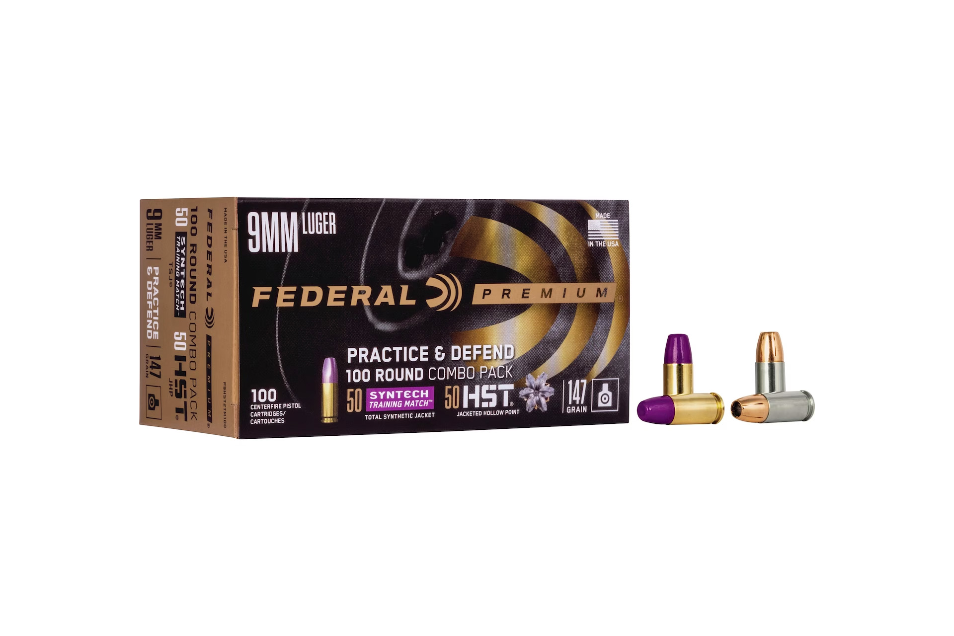 The Federal Premium loads start with the finest primers, which are subjected to more frequent inspections for dimensional tolerances and charge weight to ensure they deliver consistent ignition for every shot. Next are the propellants, which are specially formulated to meet Federal’s stringent specifications. These clean-burning powders are of the highest grades in the industry. They’re consistent and reliable. Practice & Defend pairs the self-defense load proven by law enforcement with the industry’s most complete training ammunition like no other. It includes 50 HST loads and 50 Syntech Training Match rounds. All produce identical velocities, trajectories, and point of impact for the most realistic training and utmost protection.