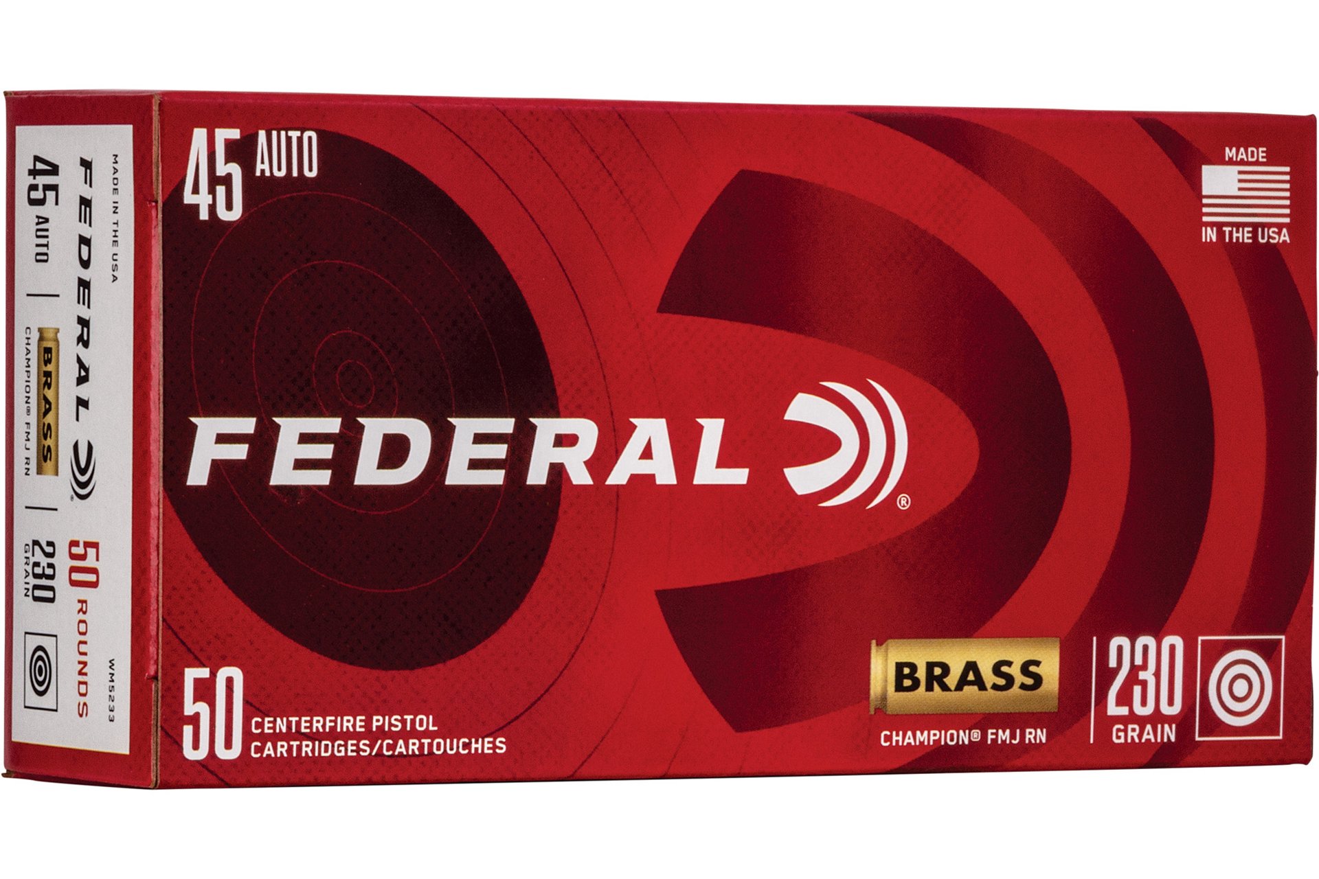 Federal Champion 45 ACP 230Gr Full Metal Jacket Handgun Ammo - 50 Rounds - WM5233