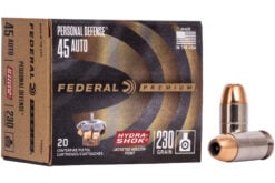 Federal P45HS1 Premium Personal Defense 45 ACP 230 gr Hydra-Shok Jacketed Hollow Point Handgun Ammo - 20 Rounds - P45HS1