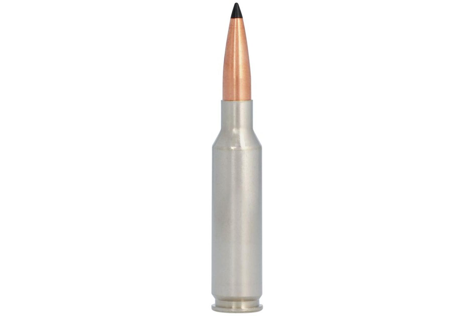 Push effective range to new extremes while delivering a more lethal blow on impact with Federal Premium® Swift® Scirocco® II loads. The polymer-tipped bullet’s streamlined design and high ballistic coefficient produce flat trajectories, while retaining more velocity and energy downrange. Aided by its Signature Black Tip™, the bonded Scirocco II expands at minimal velocities yet offers high weight retention at close range thanks to its bonded copper jacket.