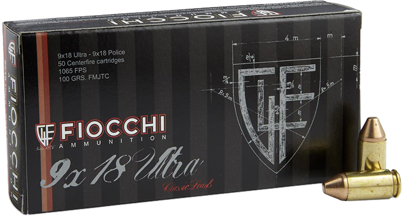 Fiocchi 9X18 Heritage Law Enforcement 9x18mm Ultra 100 gr Full Metal Jacket Truncated-Cone (TCFMJ) Handgun Ammo - 50 Rounds