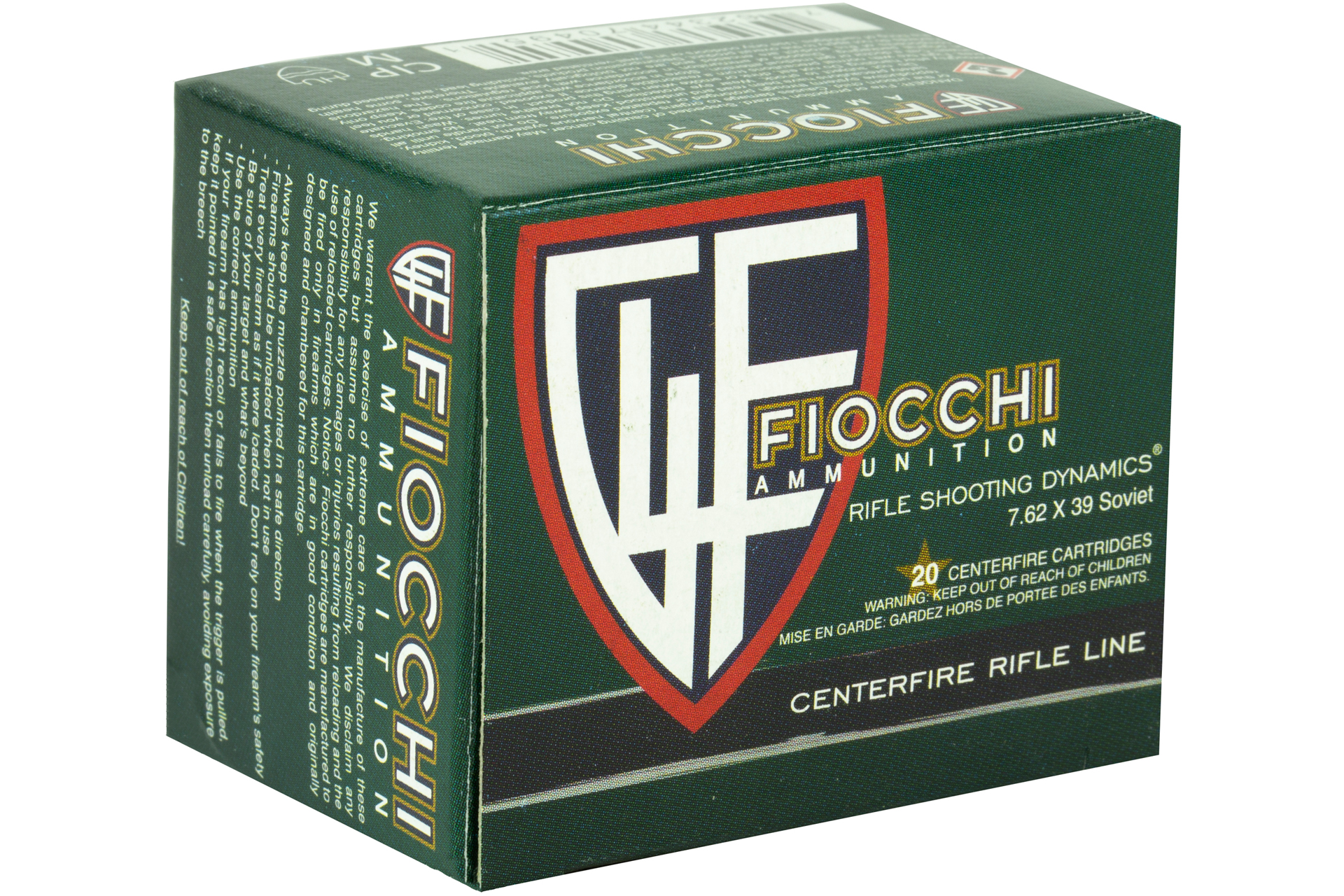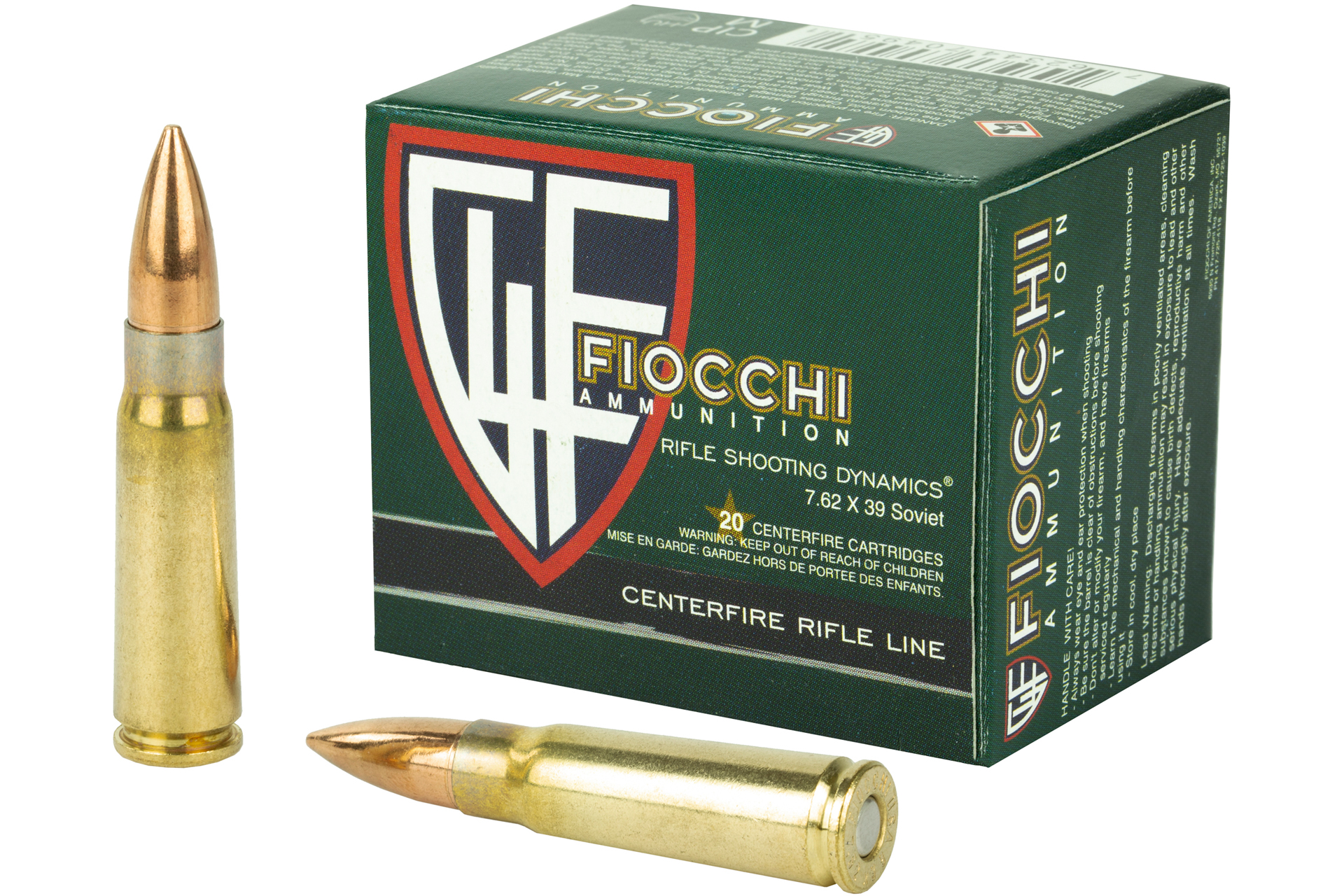 Fiocchi Ammunition Rifle 762X39 124 Grain Full Metal Jacket Rifle Ammo - 20 Rounds - 762SOVA