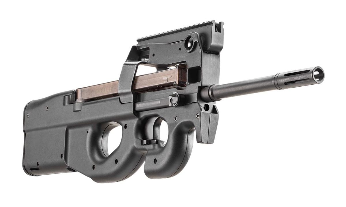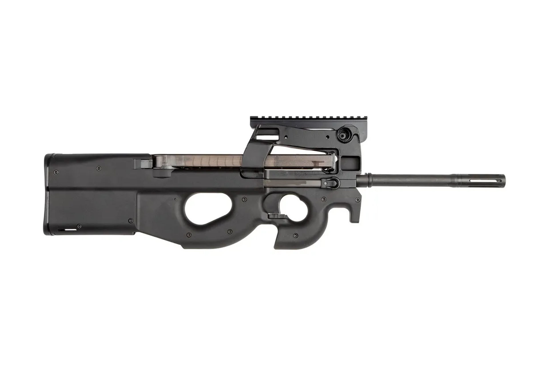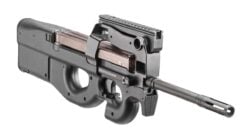 The FN PS90 is a groundbreaking firearm built around a highly ergonomic design. The rear and forward thumb holes provide the shooter with a solid and stable grip and enhance controllability. This FN rifle has an innovative top mounted magazines system which enhances the futuristic appearance. Unique to bullpups, the ejected cartridges are forced downward through the bottom of the firearm which avoids spent casings ejecting close to a shooters eye. The fully ambidextrous controls accommodate left or right-handed shooters. The MIL-STD 1913 Picatinny rail that is mounted to the top of the receiver allows for the user to use any optic of their choice and has integrated iron sights in case the optic goes down.The FN Herstal P90 has seen combat use since the 1990s, in the Gulf War, War in Afghanistan, and the Iraq War and FN’s offering of the PS90 bullpup rifle allows for civilians to virtually own a piece of military history.