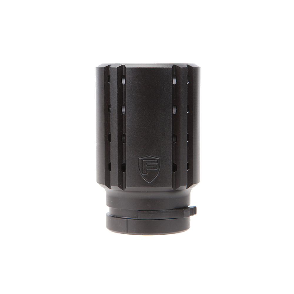 You breach, shoot a few rounds and then can’t hear feedback from your team because you’re temporarily deaf from the concussion and blast noise from your muzzle device. The Fortis Control Shield was designed to push the noise forward for combative situations or even for simple range use, while the top ports keep the muzzle device flat on target. The patent pending quick detach system will be made available for other manufacturer’s to use in conjunction with their muzzle devices.