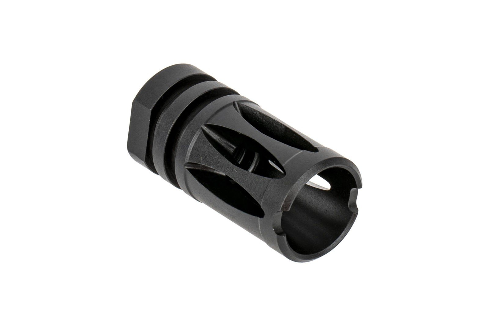 The effective design of the 6315 draws inspiration from the muzzle device found on Stoner 63 -itself an improvement on the A2 flash hider – but modernized and tweaked for superior performance. By shortening and narrowing the side ports, muzzle rise reduction has improved and the increased real estate at the muzzle end has allowed the inclusion of wire cutter notches at 3 and 9 o’clock positions. The impressive suppression capabilities combined with the lightweight and small design are proof that larger muzzle devices aren’t necessarily better. Simple, clean, and effective, the 6315 is an excellent option for your next AR-15 build.