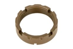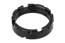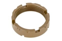 Military specifications require castle nuts to be staked in two locations to ensure the castle nut and buffer tube will not loosen without deliberate action, and FCD believes this is one of those points where less is definitely not more. Traditional MIL-SPEC castle nuts have 3 staking notches, the CNF features 4, ensuring at any time three are available to be used. Each notch has also been upgraded to a deep, 30-degree cut, making them 25% longer than MIL-SPEC to ensure enough material can be staked into the notch for secure installation. To make threading the castle against the end plate even easier, the outer edge features coarse serrations.
