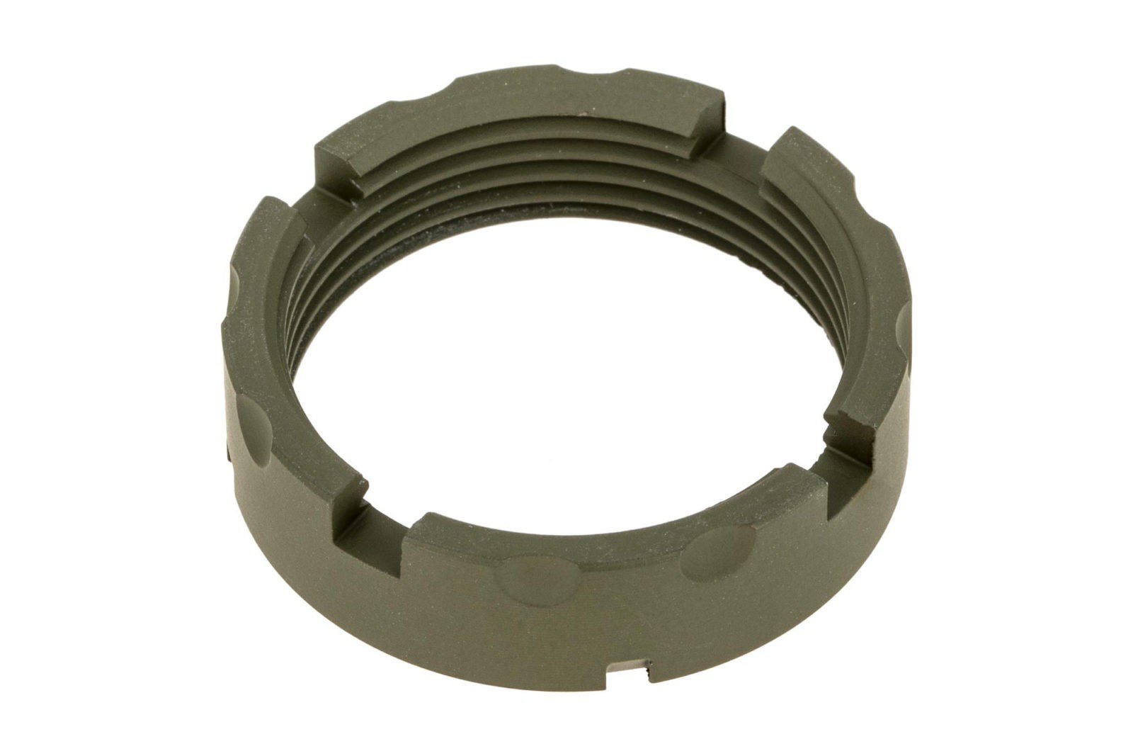 Military specifications require castle nuts to be staked in two locations to ensure the castle nut and buffer tube will not loosen without deliberate action, and FCD believes this is one of those points where less is definitely not more. Traditional MIL-SPEC castle nuts have 3 staking notches, the CNF features 4, ensuring at any time three are available to be used. Each notch has also been upgraded to a deep, 30-degree cut, making them 25% longer than MIL-SPEC to ensure enough material can be staked into the notch for secure installation. To make threading the castle against the end plate even easier, the outer edge features coarse serrations.