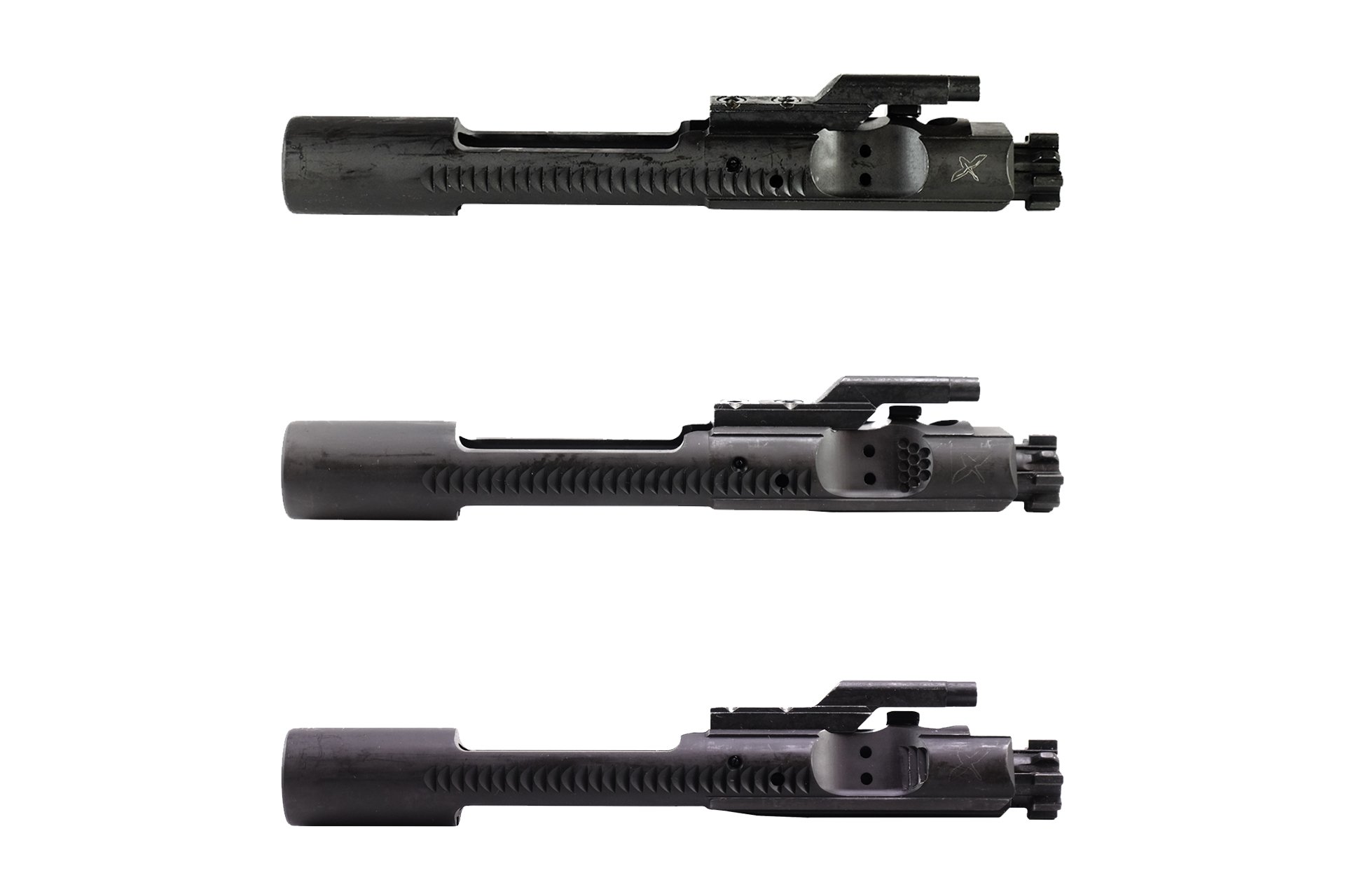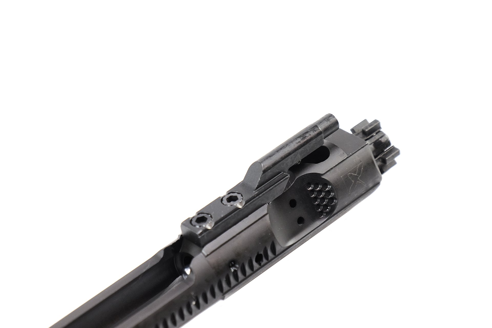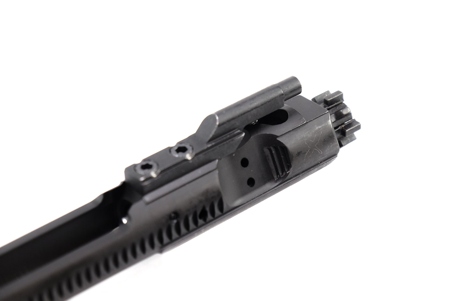 The bolt is cut from Carpenter 158 tool steel and shot peened to relieve stress and increase durability. Each bolt is high pressure tested and magnetic particle inspected against defects, and finished (along with the carrier, gas key, and cam pin) with a tough NP3 treatment to reduce friction and carbon build up for easy cleaning and lower requirements for lubrication. For extra reliability, FCD has even thrown in a heavy-duty extractor spring with black insert.