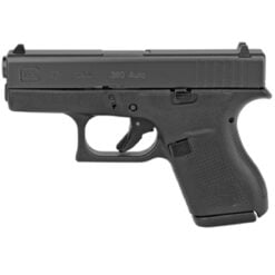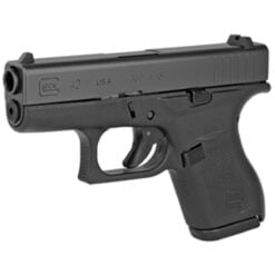 Glock 42, Striker Fired, Semi-automatic, Polymer Frame Pistol, Sub-Compact, 380 ACP, 3.25″ Barrel, Matte Finish, Black, No Finger Grooves, Fixed Sights, 6 Rounds, 2 Magazines UI4250201