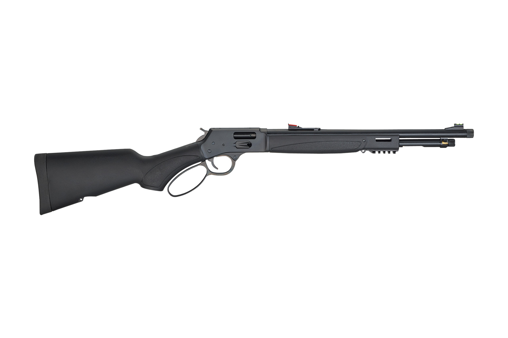 The Henry Big Boy X-Model is packed with a high-performance feature set and plenty of room to add even more. The durable synthetic furniture is equipped with integrated mounting points for a sling, a solid rubber recoil pad, and both Picatinny and M-Lok accessory slots to aid in mounting the tools you need for the task at hand. The carbine-length barrel is topped off with highly visible fiber optic sights, fore and after, and the muzzle end is threaded (5/824 thread pitch) to accept a suppressor or other muzzle device. A screw-on thread protector ensures your muzzle threads stay in top shape. Keeping true to our roots the Henry Big Boy X Model utilizes a 7-round removable tube magazine for convenient unloading, and the addition of a side loading gate allows that magazine to be kept topped off without needing to remove the tube or suppressor. Whether its geared up to be your bedside protector, truck gun, deer rifle, or Saturday range day show-off piece, the Big Boy X Model is one rifle capable of many different roles.