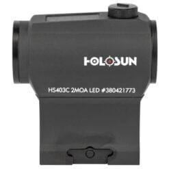 SKU: 4574 Categories: Other, Excluded from Codes, Red Dot / Holographic Sights DescriptionThe HS403C is a solar version of the successful HS403A. Holosun’s highly efficient light emitting diodes and solar panels allow Holosun solar optics to run without a battery in many lighting conditions. Additionally, the back-up battery lasts up to 5-years. The HS403C is compatible with standard mounts.
