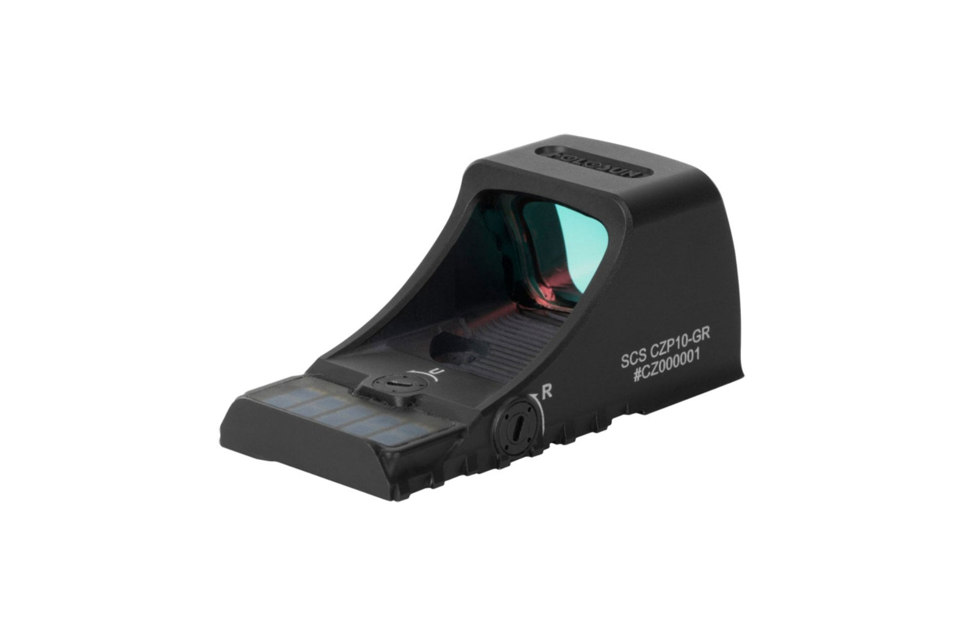 SKU: 25197 Category: Sights DescriptionThe Holosun SCS Solar Charging Green Circle Dot Fits CZ-P10 Pistol Cut Reflex Sight (SCS-P10-GR) is designed for the CZ-P10 optics-ready handguns. It is designed to attach directly to the slide without an adapter plate and uses their innovative solar charging system with multi-directional light sensors to automatically adjust brightness in dynamic situations. The SCS can potentially operate indefinitely with its internal, rechargeable 20,000-hour battery. With moderate exposure to bright light the SCS models charge the battery with more power used to display the reticle so you will never need to change batteries again.