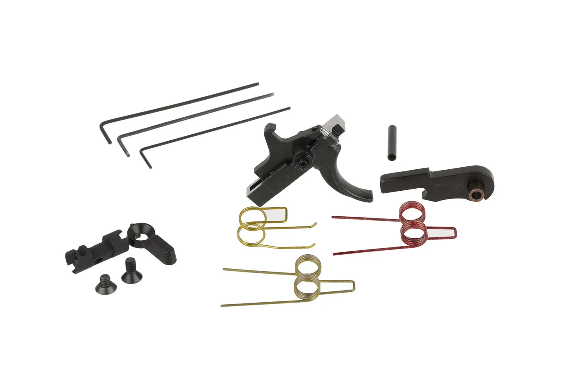 SKU: 23915 Category: AR-15 Triggers DescriptionA gun smith quality trigger job that can be done at home in five minutes! Includes reversible, customizable safety selector. The complete trigger system installs in five minutes without fitting or modification of parts on the trigger or your receiver. All adjustments are made with setscrews, eliminating the risk of ruining the trigger due to errors in fitting. Includes the JP Speed Hammer for fast lock time, plus “anti-walk” pins with button head cap screws for easy removal and re-installation of the trigger system. Overtravel adjustment screw lets you set your trigger for a clean, crisp, single-stage release. Includes safety and optional fire control springs.
