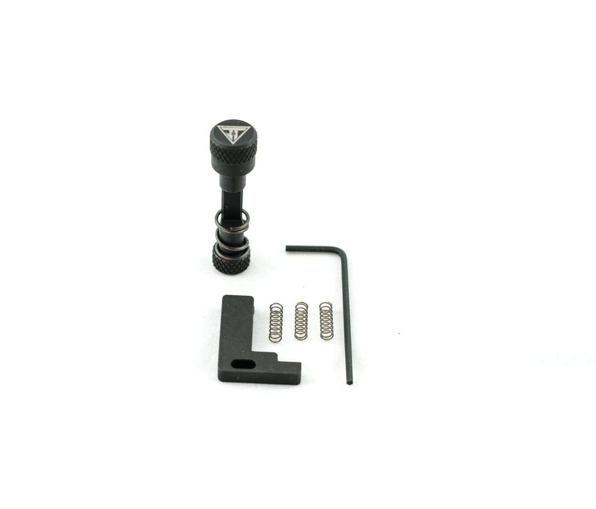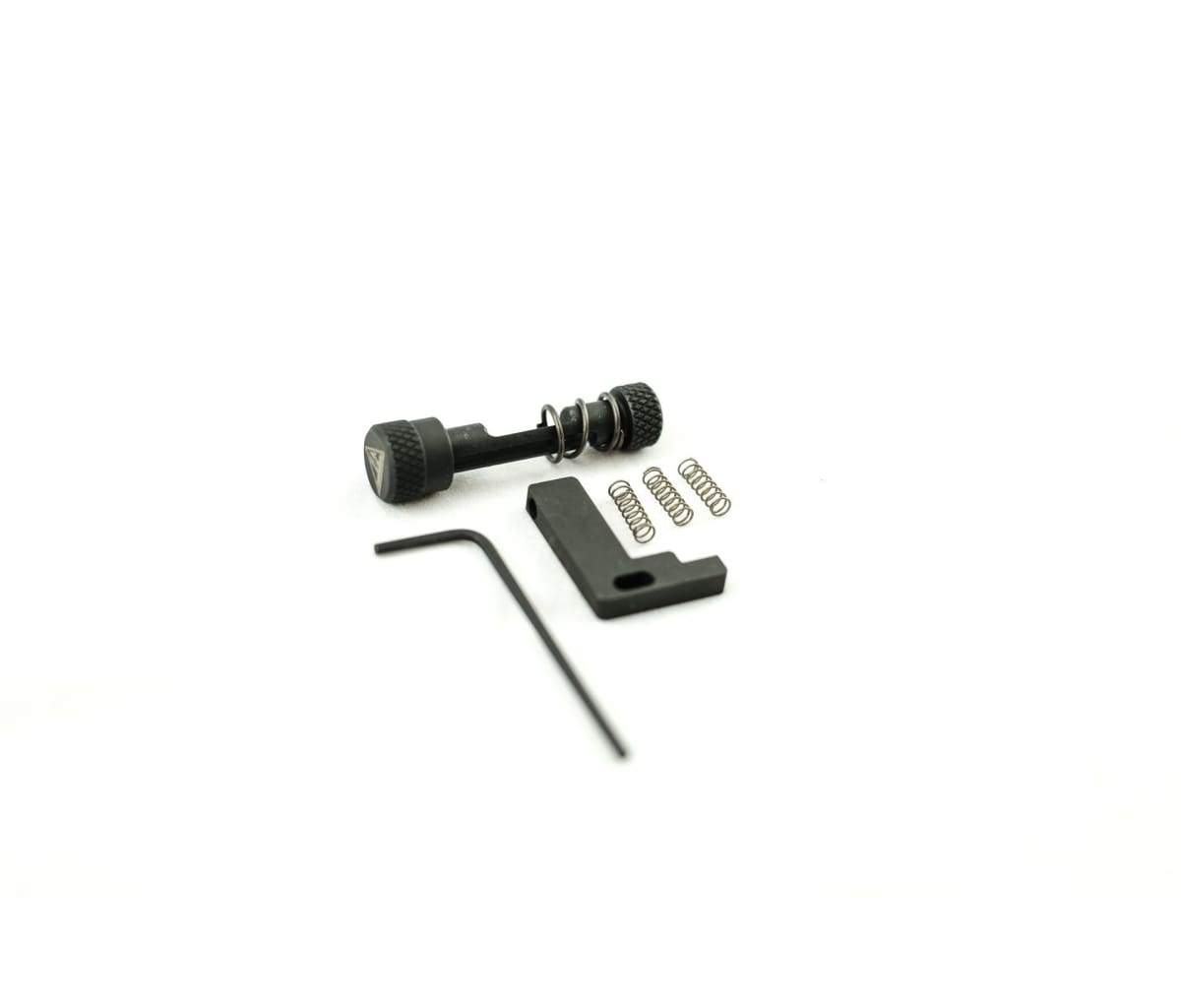 By changing out your rear take down pin and replacing it with our modified take down pin in combination with a new bolt catch now used as a magazine lock, you will have a completely CA Compliant AR. You no longer have to use a Featureless AR solution. Our system will allow you to keep all of your current features, including a pistol grip, a forward grip, and adjustable butt stock. You can even reinstall a mil-spec magazine release. No need for a bullet button.
