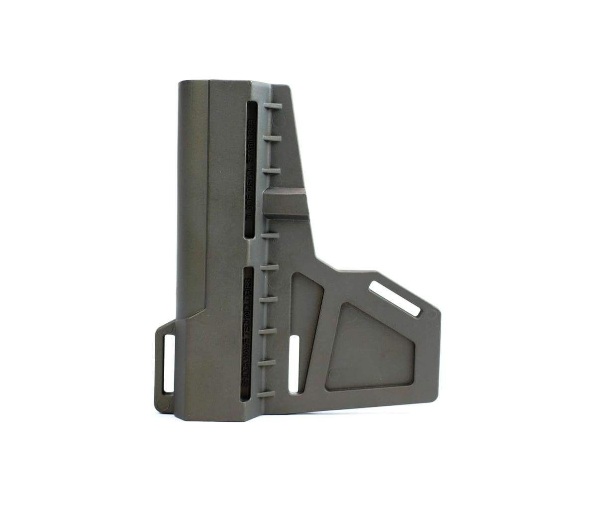 SKU: 2729 Category: Pistol Stabilizers DescriptionATF Approved and built to last the KAK Shockwave Blade Pistol Stabilizer is a high-strength polymer brace which mounts on any AR-15 Pistol equipped with a pistol buffer tube (up to 1.25″ in diameter). Once installed this unit locks down securely for a great fit.