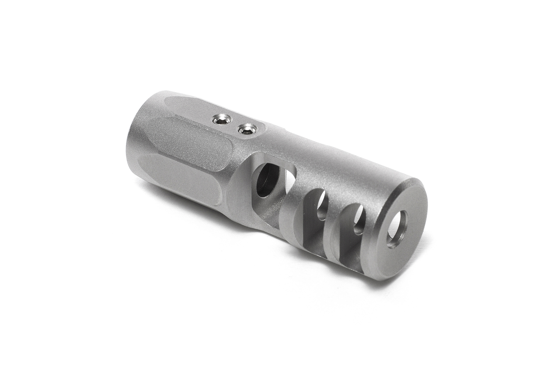 - Dual adjustable jet locations at the 12 o’clock position direct gas from the blast chamber upwards, creating a downward force on the muzzle, effectively eliminating muzzle climb