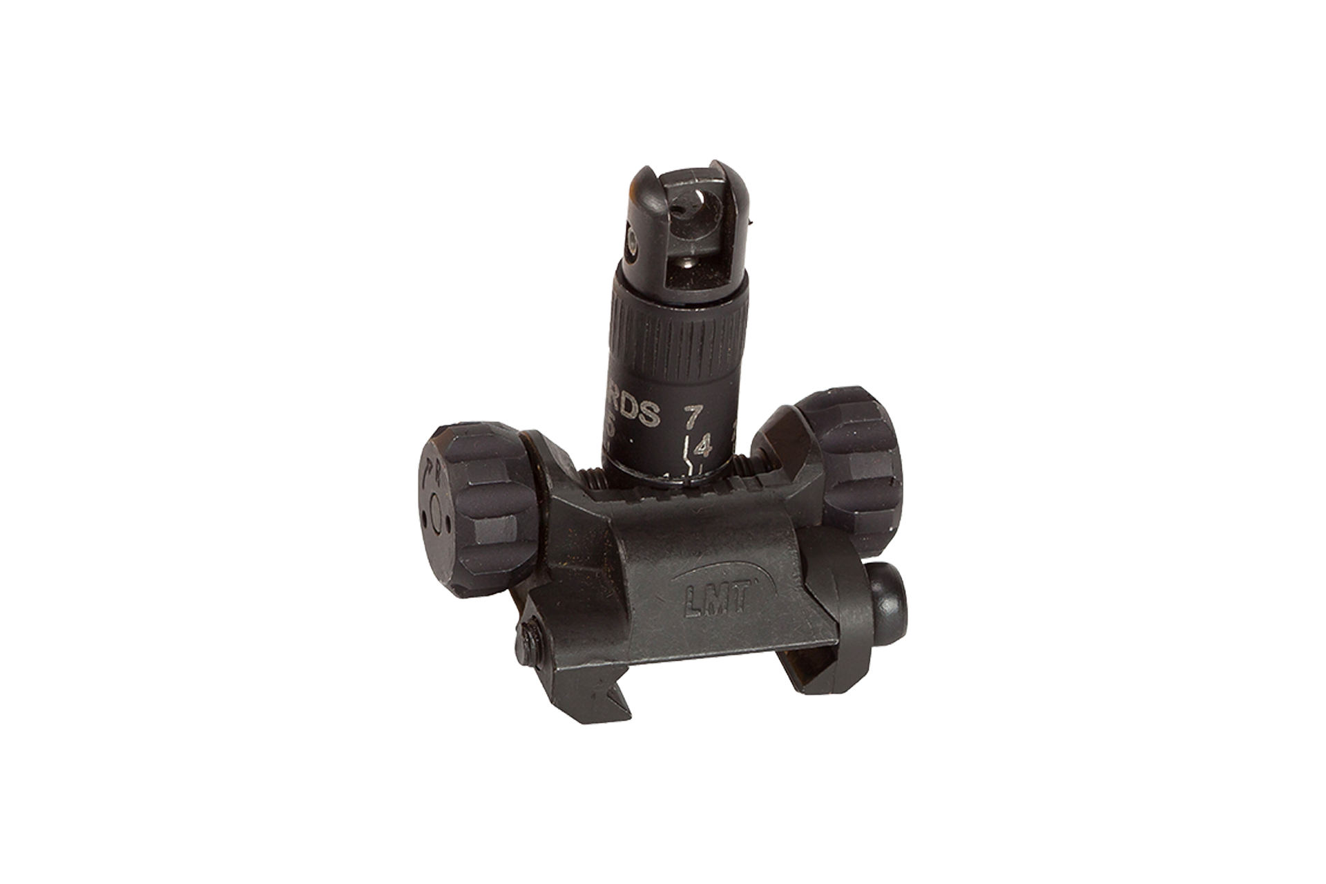 SKU: 13120 Categories: Optics & Sights, Sights DescriptionA tough, sleek design, the LMT Rear back up sight is adjustable for windage and elevation to 700 yds utilizing 5.56mm. Features thimble elevation adjustment and flip peep options found on standard A2 sights. This is a must have rear sight for your next M4 build.