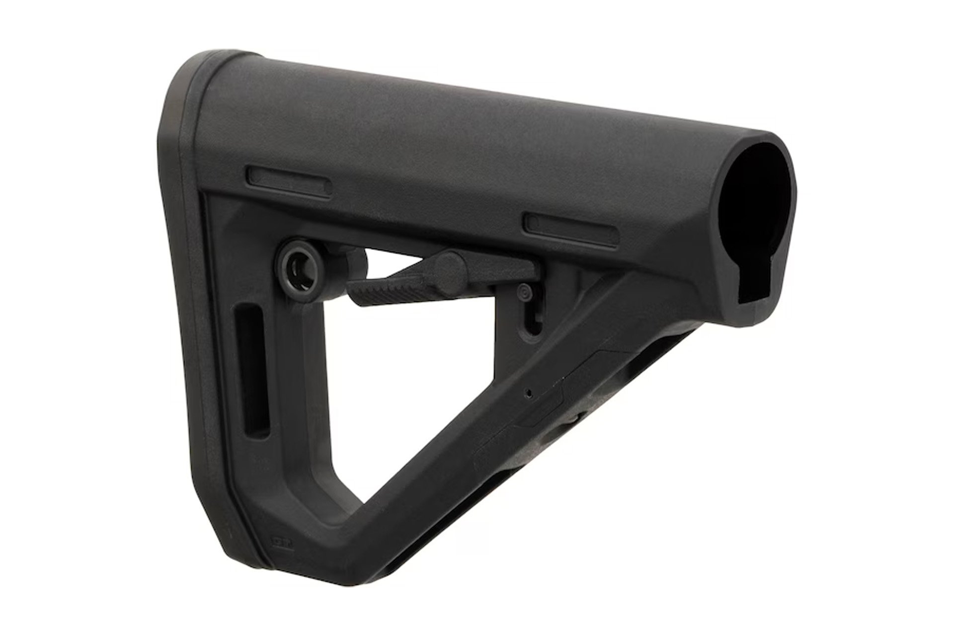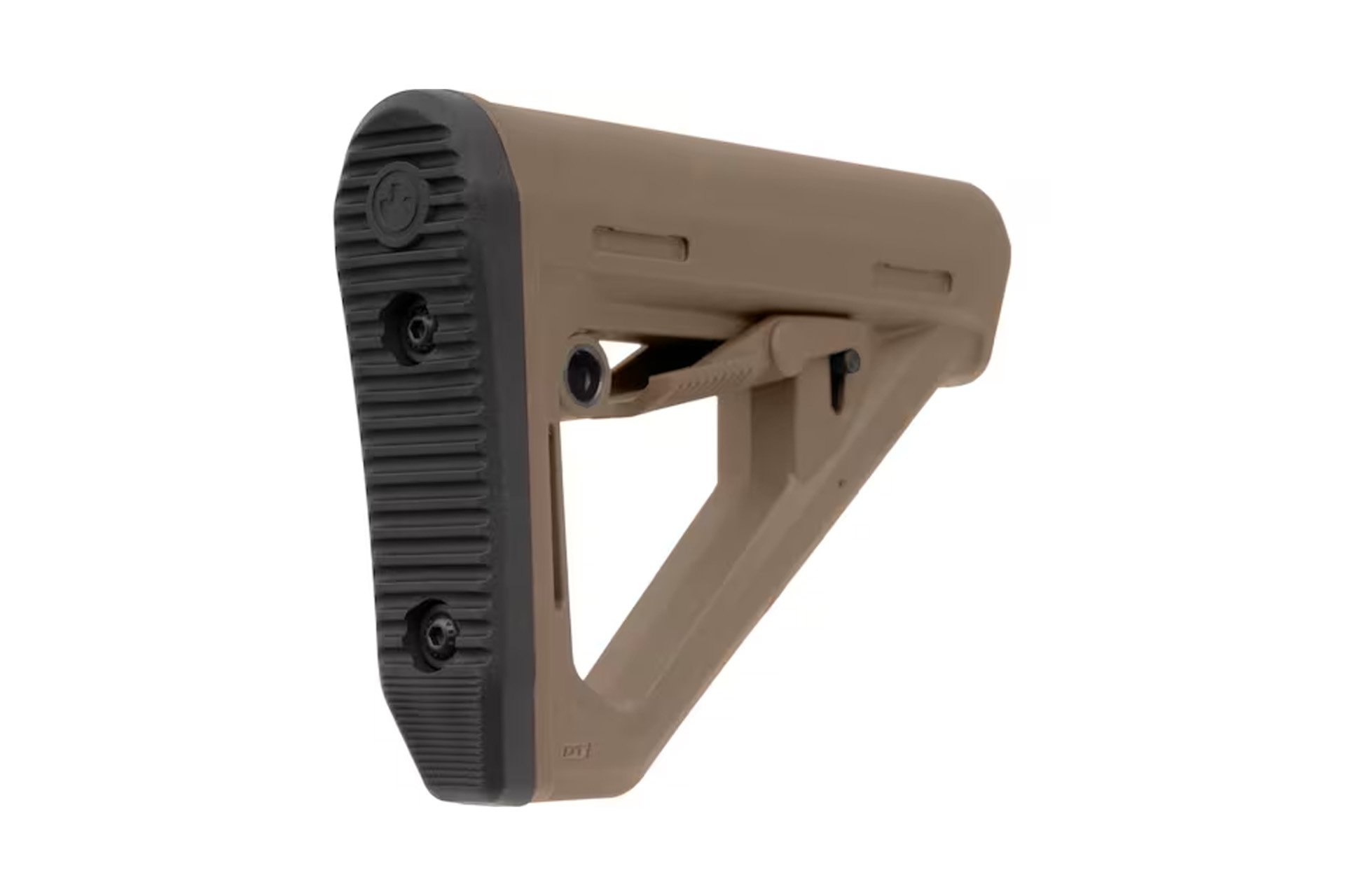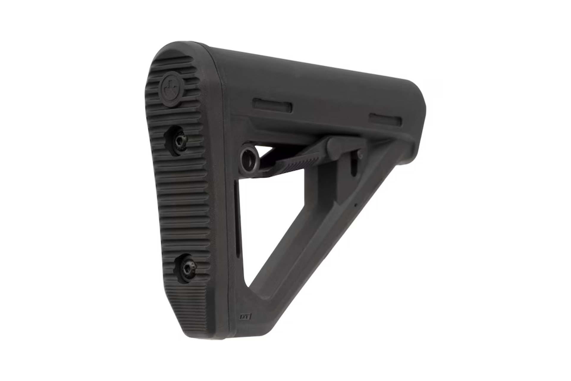 The DT Stock is an A-frame style carbine stock that features an auto-engaging friction lock that’s reflexive and inert during adjustment. This produces additional tension on the buffer tube, providing extra tight lockup that minimizes movement between the stock’s lock pin and receiver extension. The result is increased durability in case of severe impacts and quick, smooth, and frictionless length-of-pull adjustments on the fly. Other features include a unique, non-slip butt-pad that matches the footprint of the SL line and incorporates the optimized curvature from the CTR, an ambidextrous adjustment lever, a rotation-limiting QD sling mount, and a 1.25” footman’s loop.