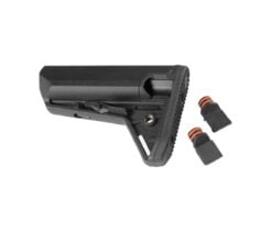 The sleek profile, dual-side release latches, and waterproof battery tubes make it the slimmest storage tube stock available. The SL-S provides an enhanced cheek weld and true, O-ring sealed, 10m waterproof storage area desired by many, but fits it into the narrowest package possible to allow a more upright head position and minimize bulk. A rolled toe and angled rubber butt-pad are optimized for use with body armor, and an ambidextrous QD sling swivel socket is included. A unique leaf-spring tension system provides a solid fit on mil-spec receiver extensions, with slightly less friction than the original SL. The MOE SL-S is the most intuitive, comfortable, and efficient storage stock available.