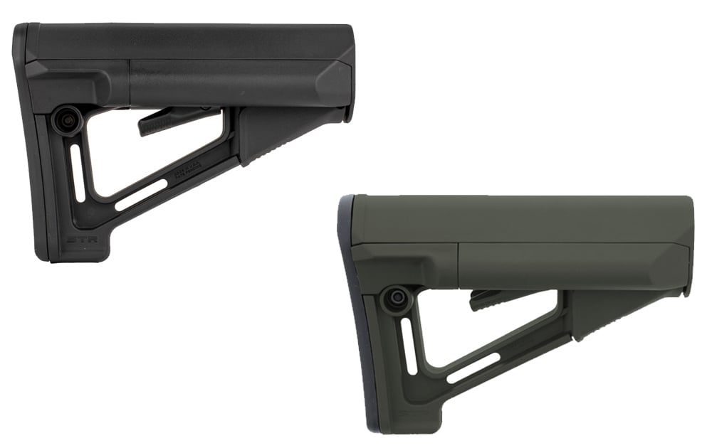 November Savings Sale: use code BFMONTH12OFF for an additional 12% off this item.The Magpul STR (Storage/Type Restricted) is a drop-in replacement buttstock for AR-15/M4 carbines using mil-spec sized receiver extension tubes. A storage-capable version of the CTR, the STR has improved cheek weld and two water resistant battery tubes on a compact, reinforced polymer A-frame design.